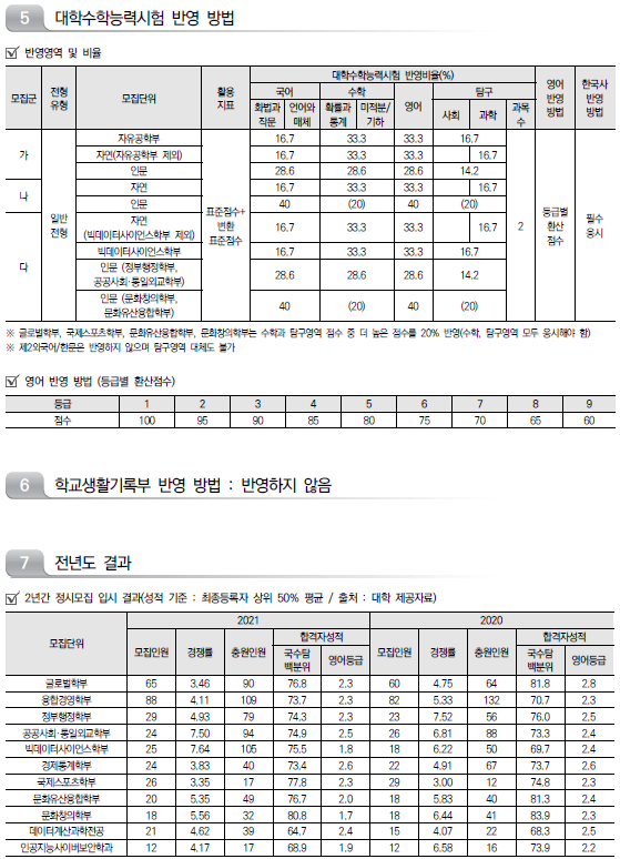 | 2022학년도 공주대학교/ 광운대학교/ 국민대학교 정시 모집요강 및 전년도 정시 커트라인 (0) | 2021.12.13 |