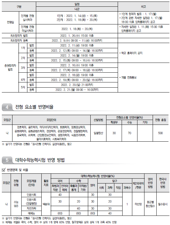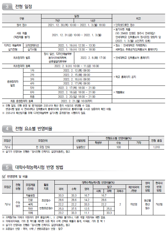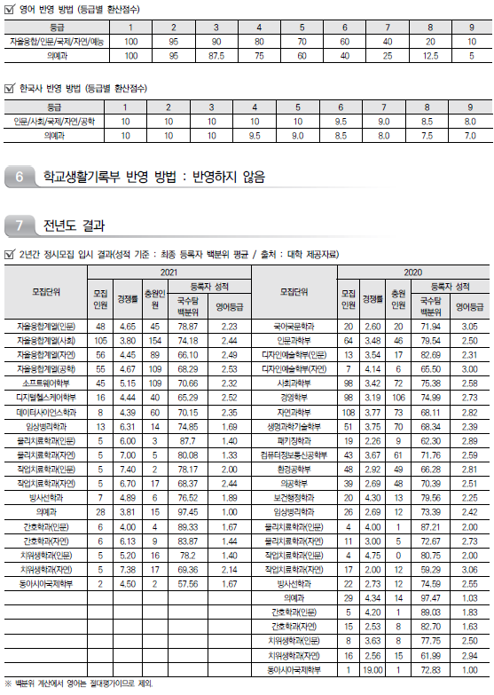 | 2022학년도 인천대학교/ 인하대학교/ 전남대학교 정시 모집요강 및 전년도 정시 커트라인 (0) | 2021.12.16 |