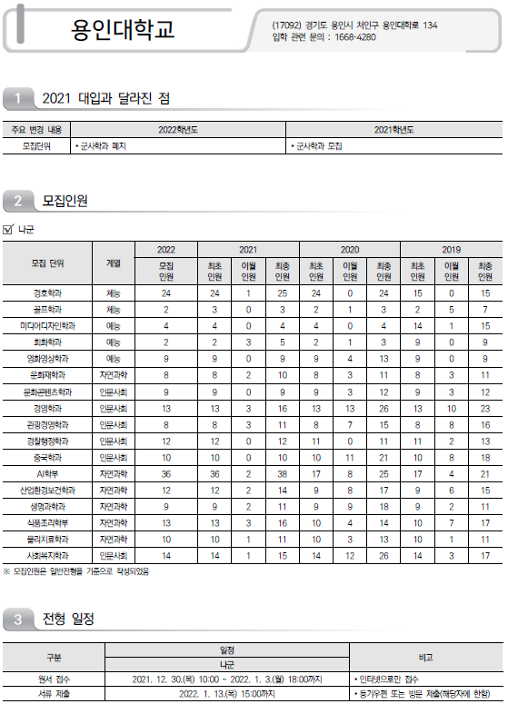 | 2022학년도 아주대학교/ 안동대학교/ 안양대학교 정시 모집요강 및 전년도 정시 커트라인 (0) | 2021.12.16 |