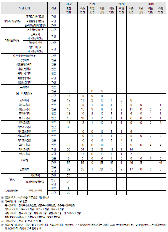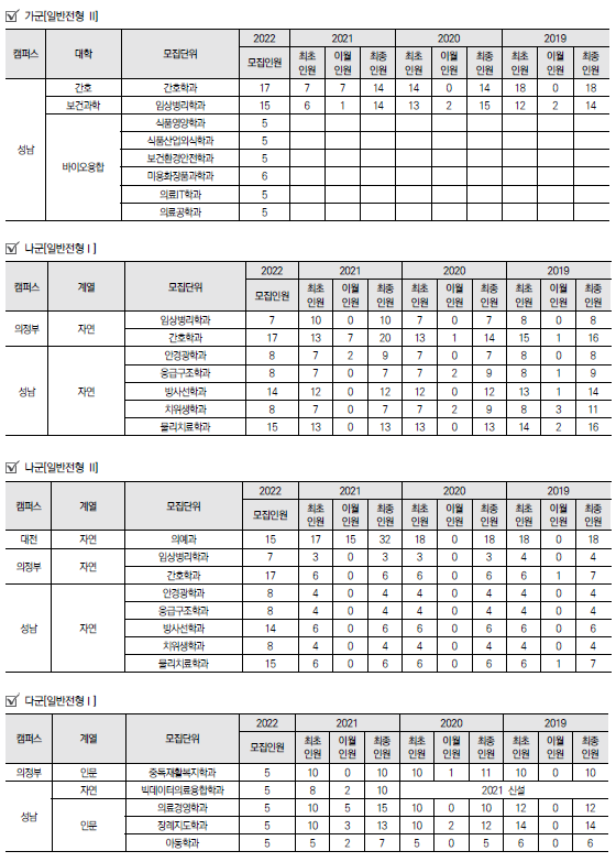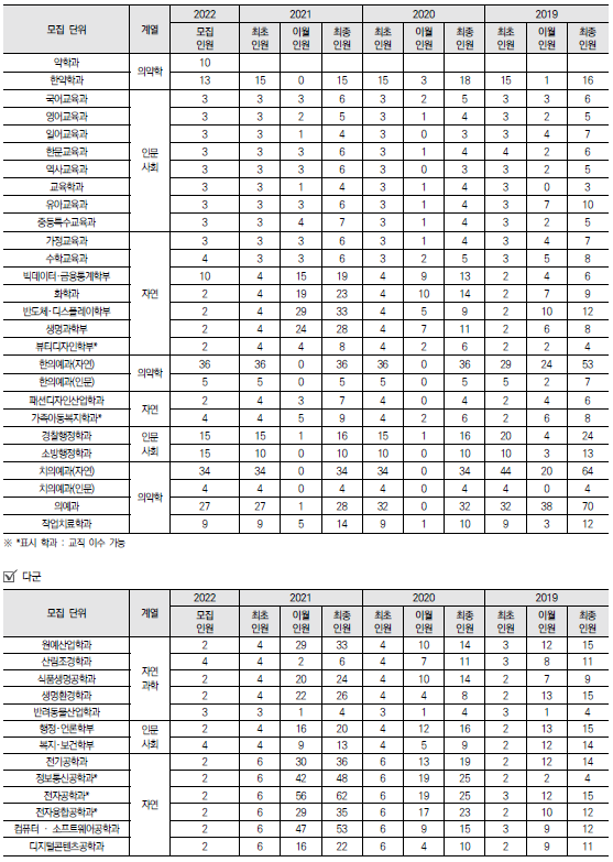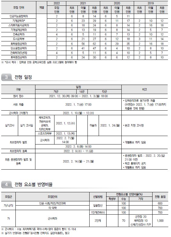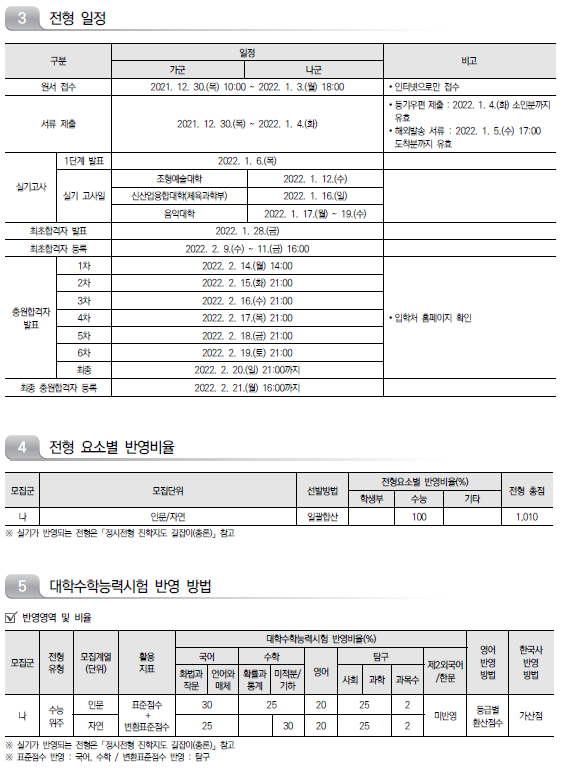 | 2022학년도 인천대학교/ 인하대학교/ 전남대학교 정시 모집요강 및 전년도 정시 커트라인 (0) | 2021.12.16 |
