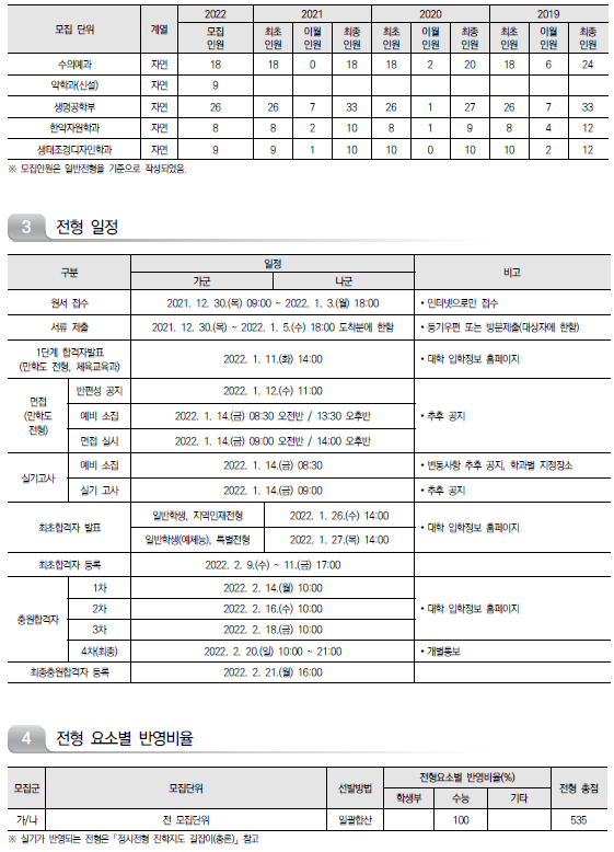 | 2022학년도 원광대학교/ 이화여자대학교/ 을지대학교 정시 모집요강 및 전년도 정시 커트라인 (0) | 2021.12.16 |