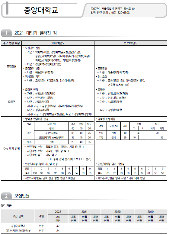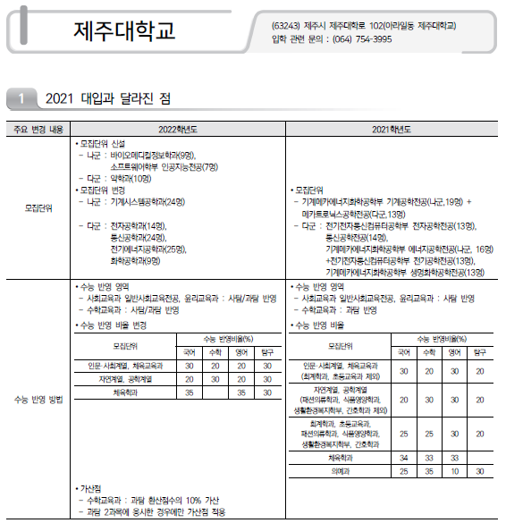 | 2022학년도 차의과학대학교/ 창원대학교/ 청주대학교 정시 모집요강 및 전년도 정시 커트라인 (0) | 2021.12.16 |