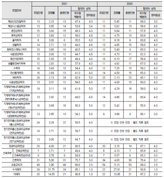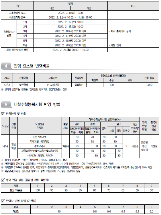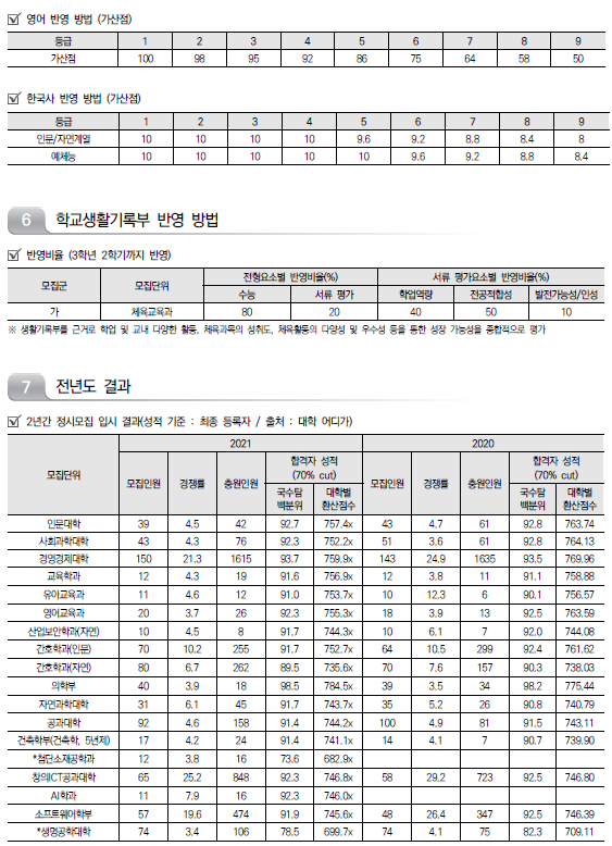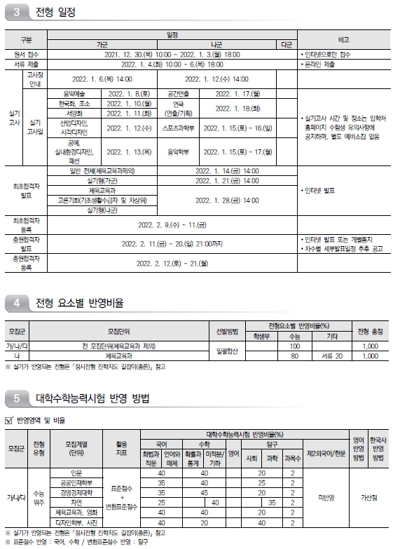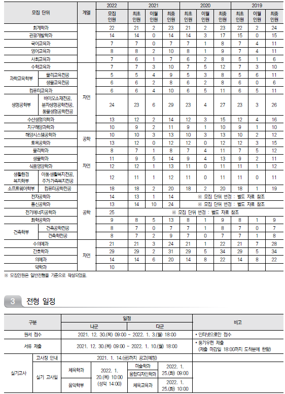 | 2022학년도 인천대학교/ 인하대학교/ 전남대학교 정시 모집요강 및 전년도 정시 커트라인 (0) | 2021.12.16 |