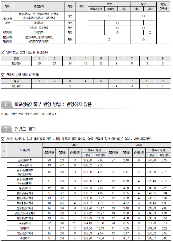 | 2022학년도 충남대학교/ 충북대학교/ KC대학교 정시 모집요강 및 전년도 정시 커트라인 (0) | 2021.12.16 |