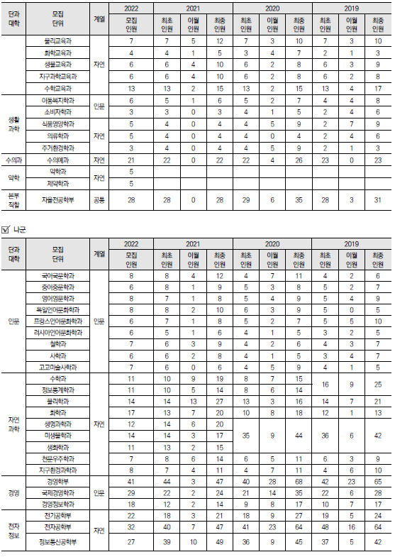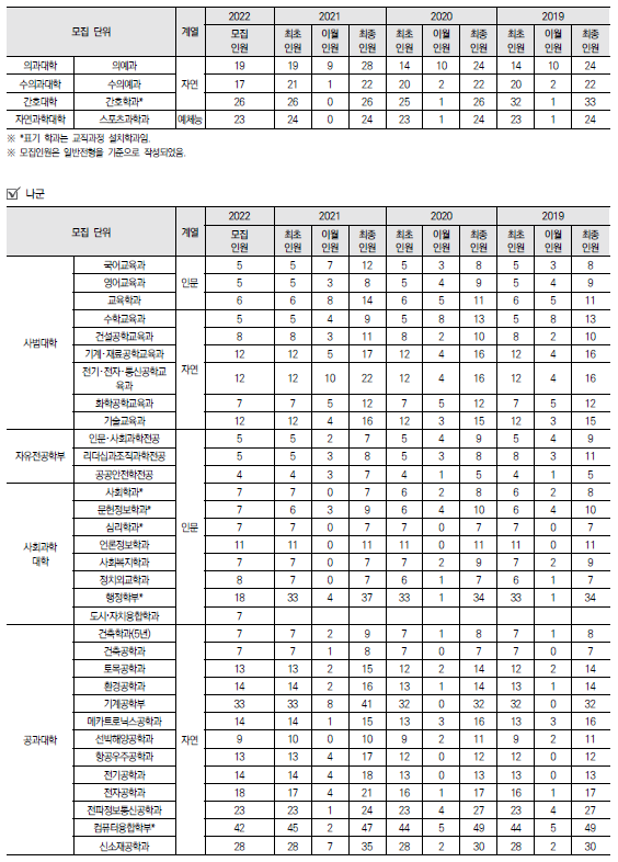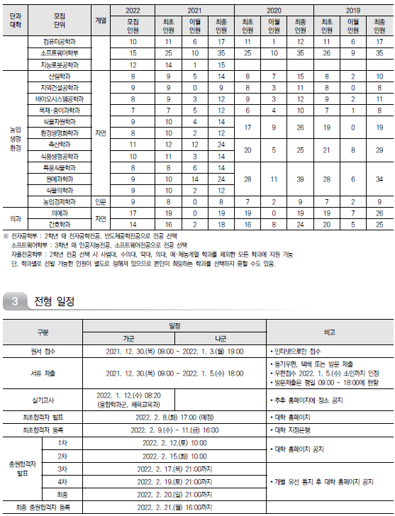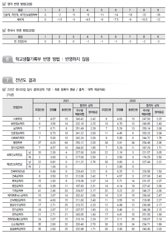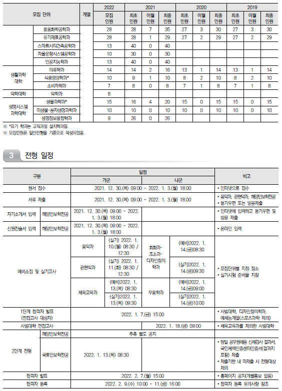 | 2022학년도 인천대학교/ 인하대학교/ 전남대학교 정시 모집요강 및 전년도 정시 커트라인 (0) | 2021.12.16 |