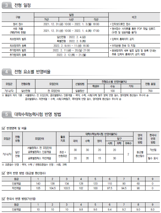 | 2022학년도 한남대학교/ 한림대학교/ 한밭대학교 정시 모집요강 및 전년도 정시 커트라인 (0) | 2021.12.16 |