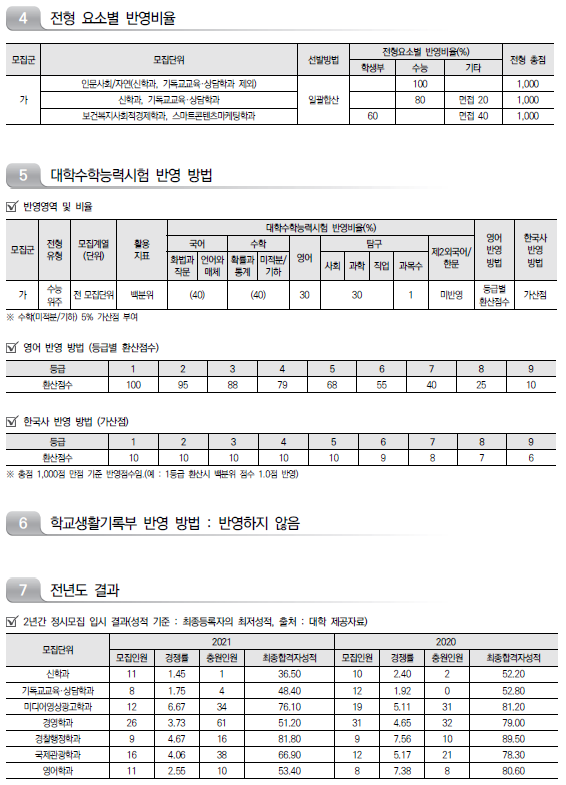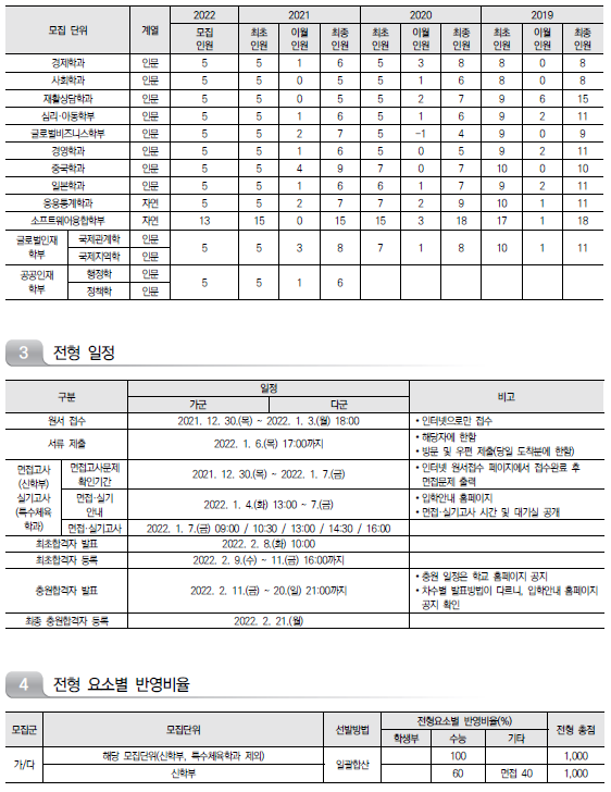 | 2022학년도 한양대학교/ 한양대 에리카(ERICA) / 호서대학교/ 홍익대학교/ 홍익대 세종 정시 모집요강 및 전년도 정시 커트라인 (0) | 2021.12.16 |