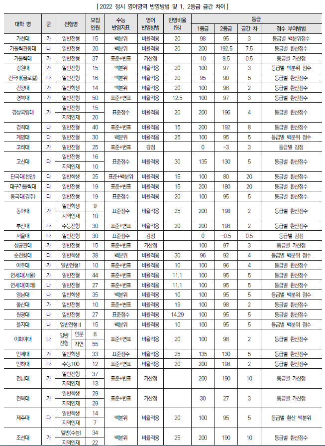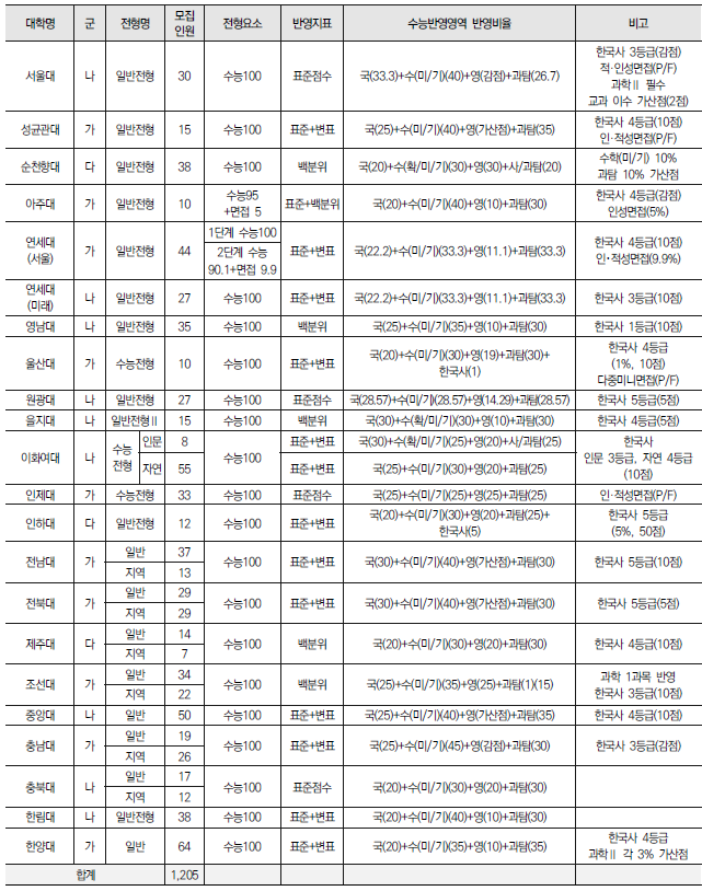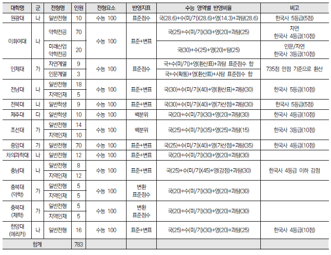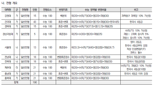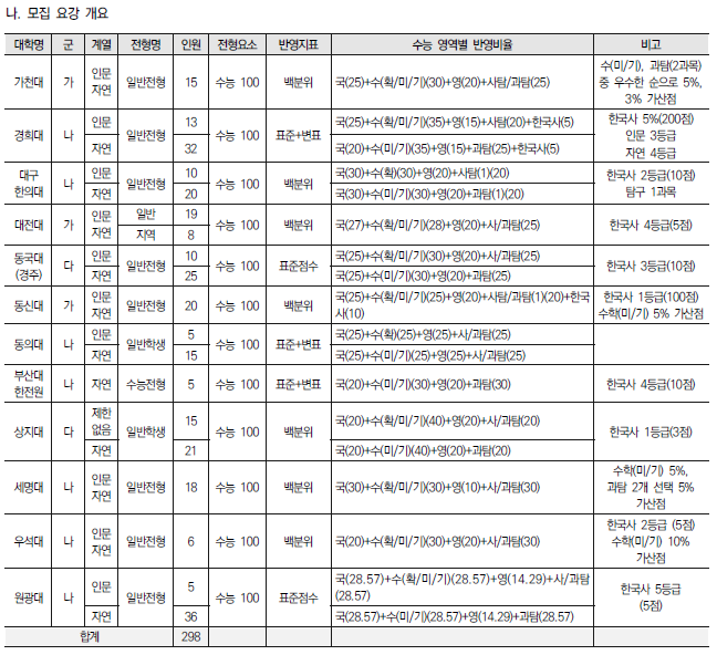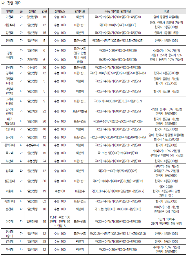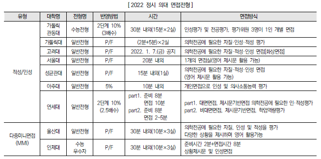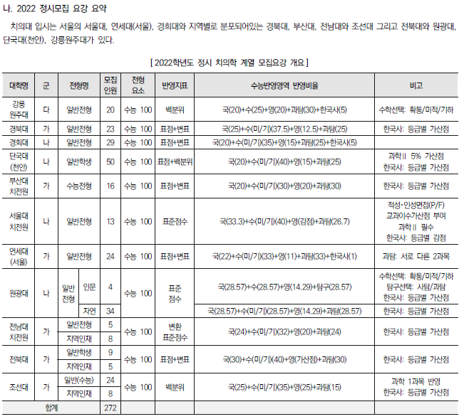2022학년도 의대, 치대, 한의대, 수의대, 약대 정시 모집 전형