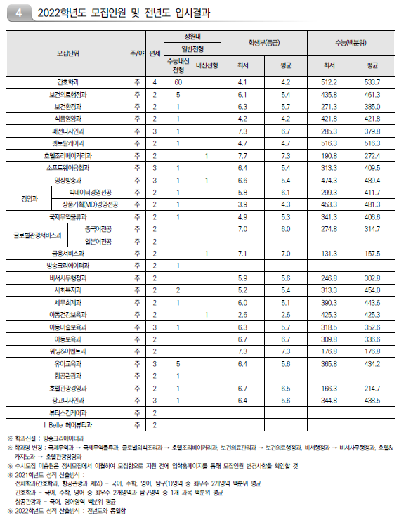 2022학년도 서울소재 전문대학교 정시 모집요강 및 전년도 입시결과(정시 커트라인) - 동양미래대, 명지전문대, 배화여대, 삼육보건대, 서울여자간호대, 서일대, 숭의여자대, 인덕대, 한양여대