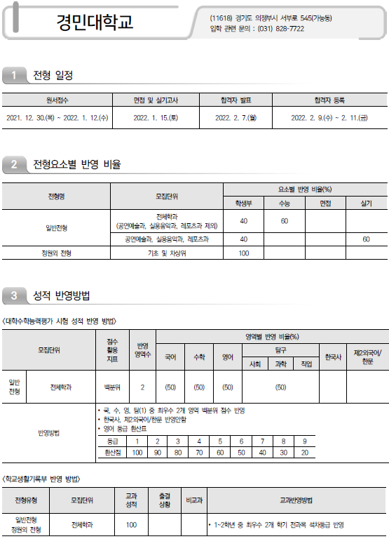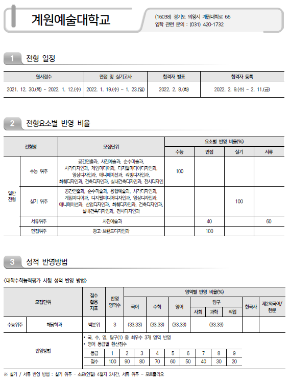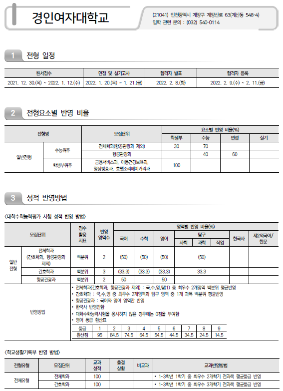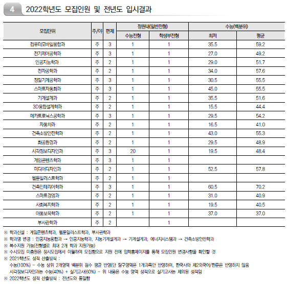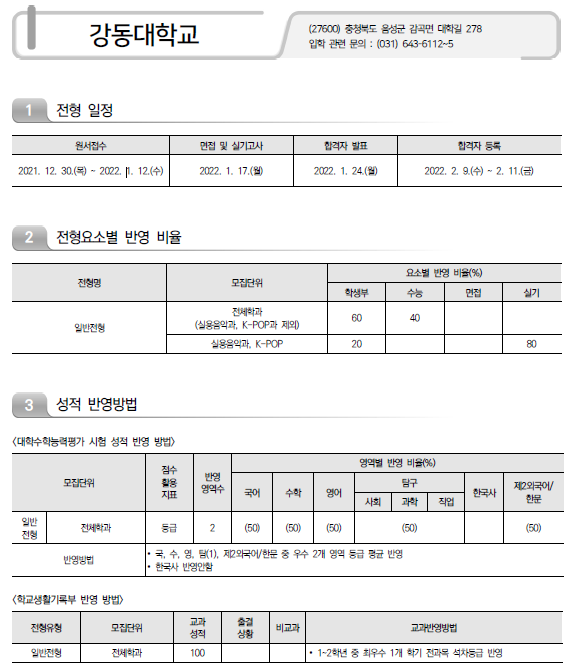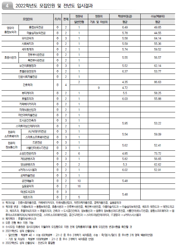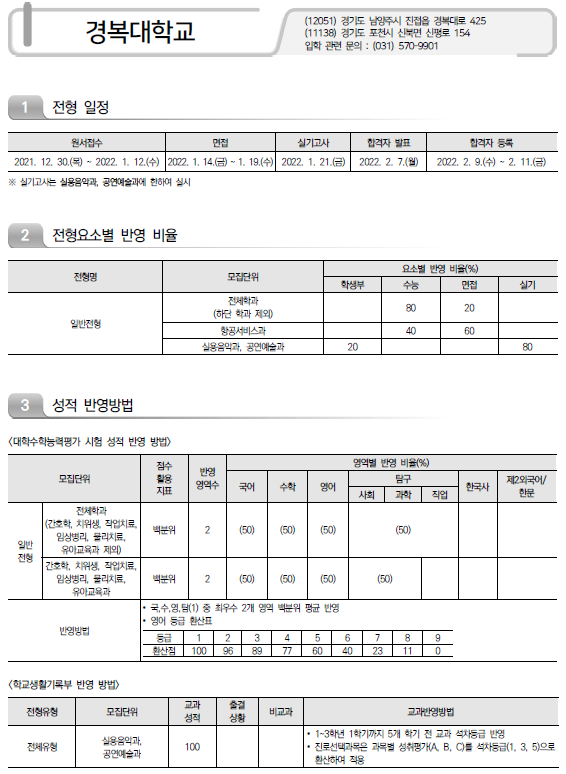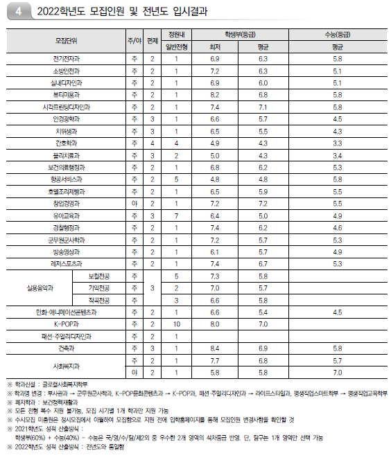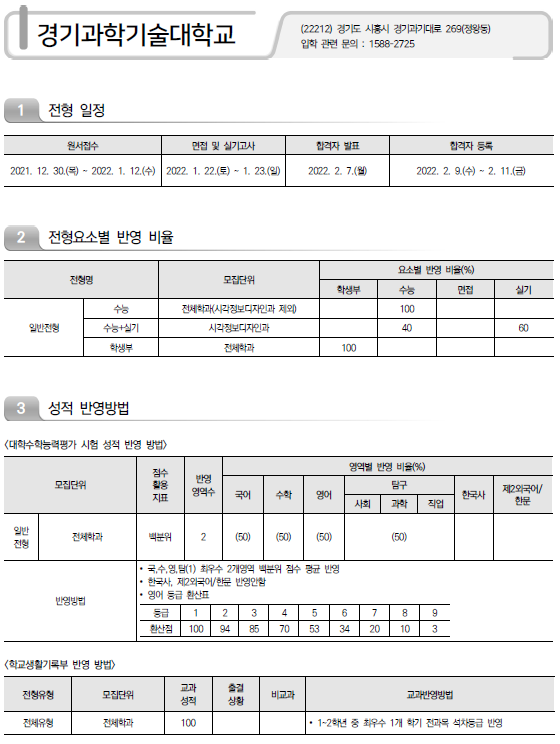 2022학년도 강동대/ 경기과학기술대/ 경민대/ 경복대/ 경인여대/ 계원예술대 정시 모집요강 및 전년도 입시결과(정시 커트라인)