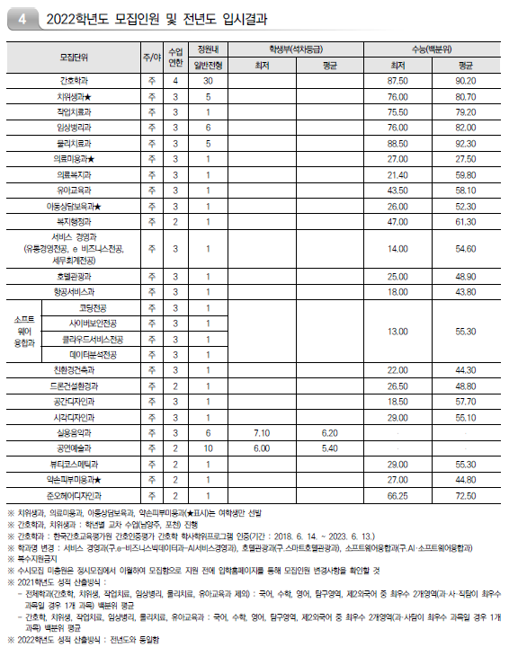2022학년도 국제대/ 김포대/ 대경대(남양주)/ 대림대/ 동남보건대/ 동서울대 정시 모집요강 및 전년도 입시결과(정시 커트라인)