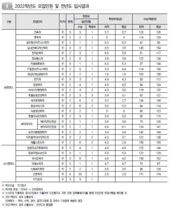 2022학년도 수원과학대/ 수원여대/ 신구대/ 신안산대/ 안산대/ 여주대/ 연성대 정시 모집요강 및 전년도 입시결과(정시 커트라인)