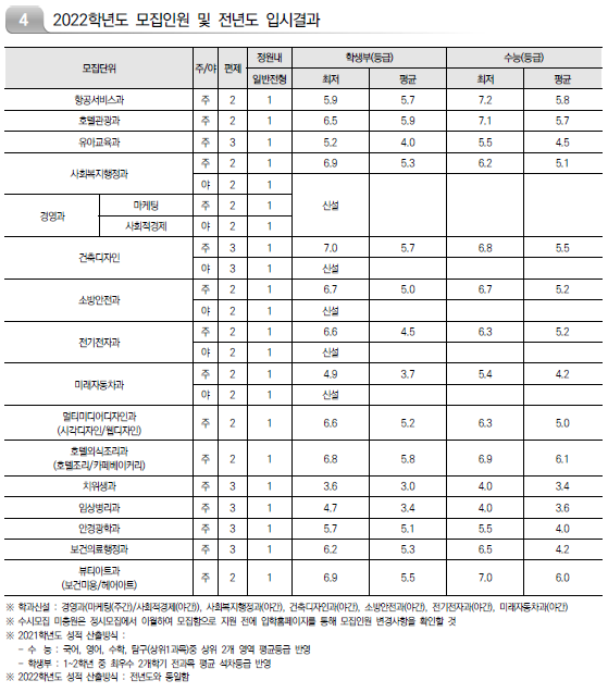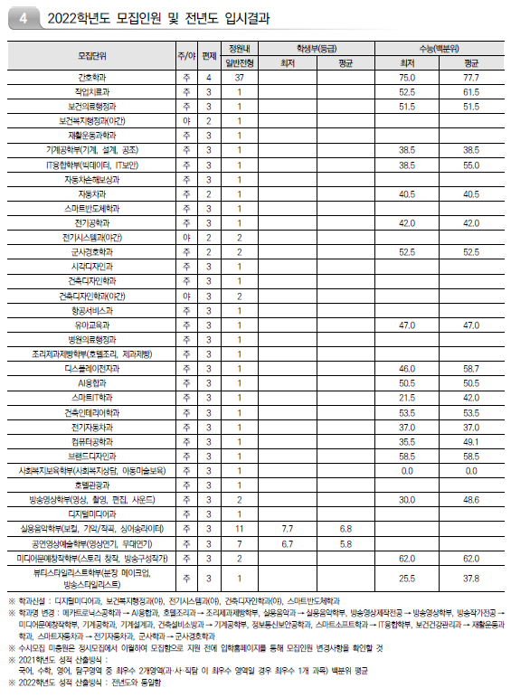 2022학년도 강동대/ 경기과학기술대/ 경민대/ 경복대/ 경인여대/ 계원예술대 정시 모집요강 및 전년도 입시결과(정시 커트라인)