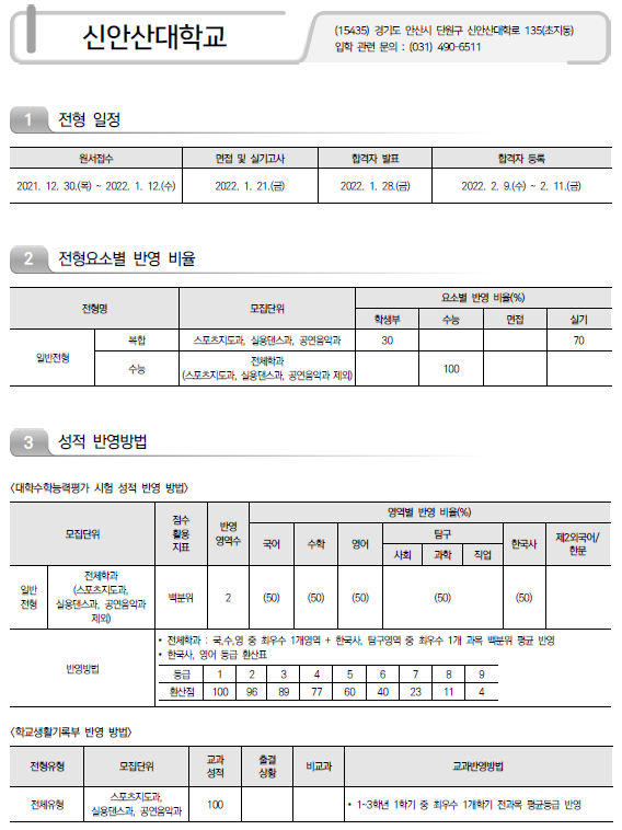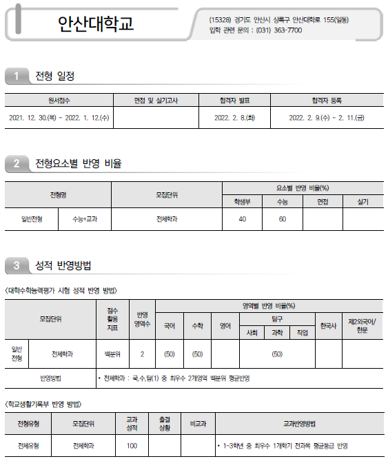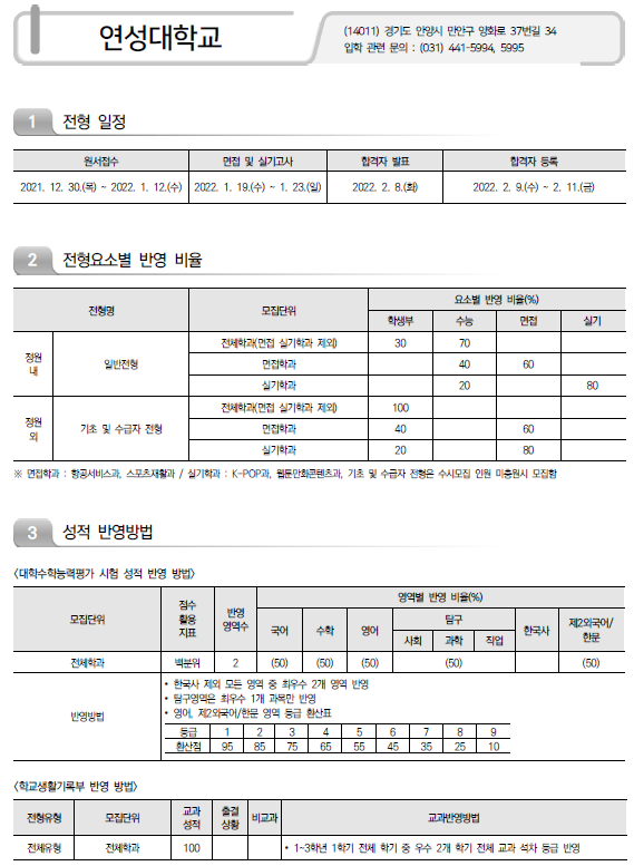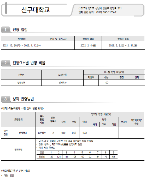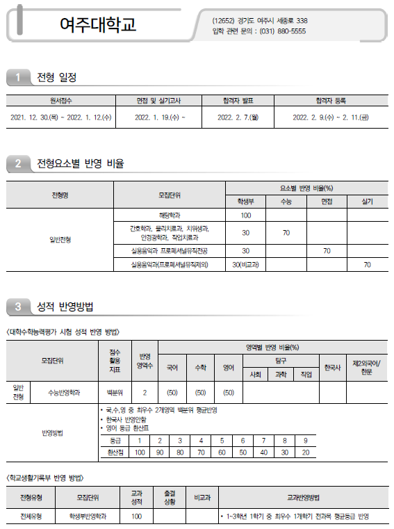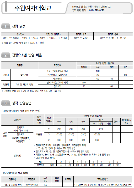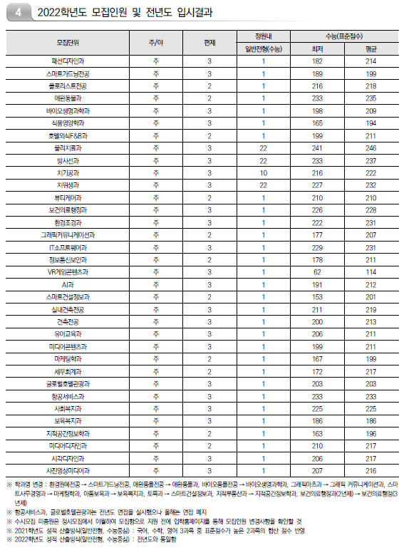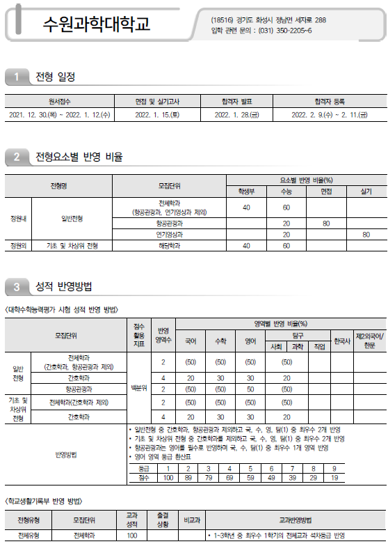 2022학년도 수원과학대/ 수원여대/ 신구대/ 신안산대/ 안산대/ 여주대/ 연성대 정시 모집요강 및 전년도 입시결과(정시 커트라인)