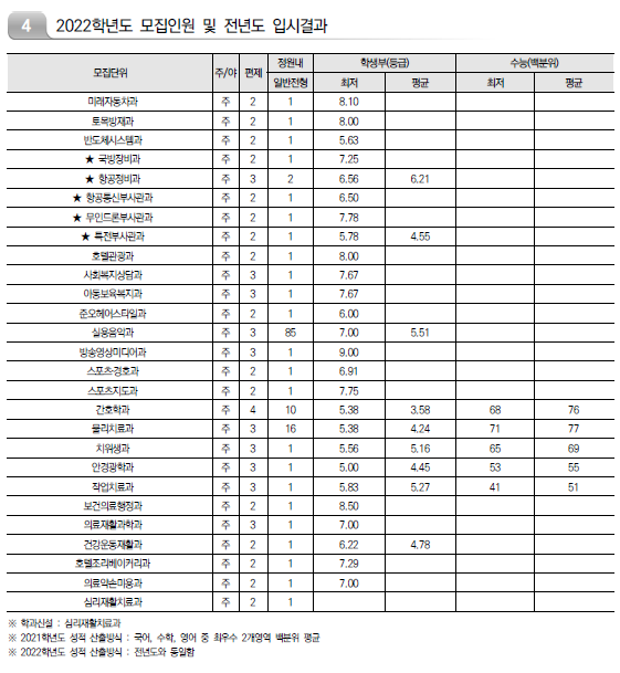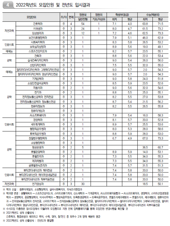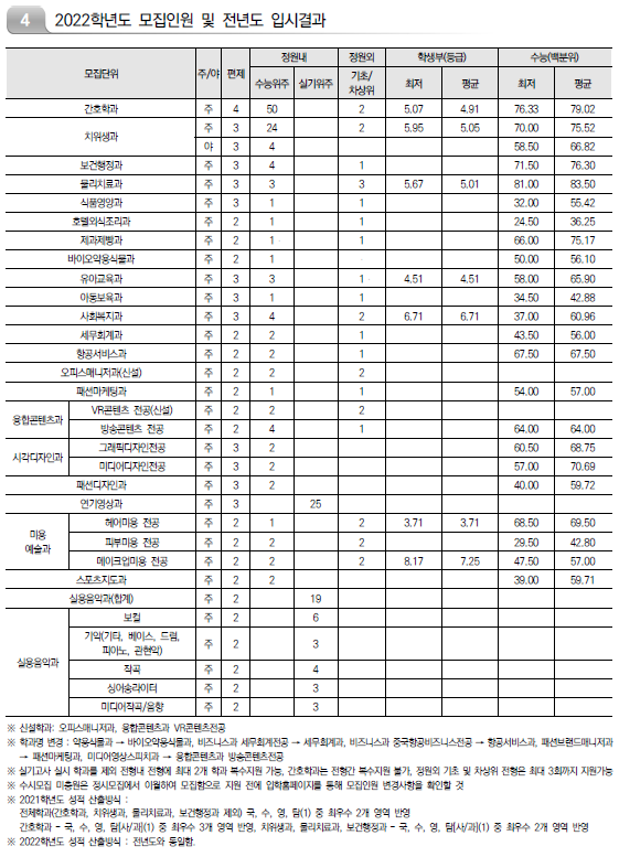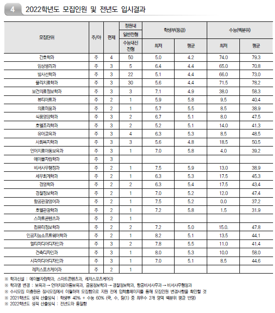 2022학년도 간호학과, 보건계열(물리치료, 치위생, 응급구조, 임상병리, 방사선학과 등)정시 모집 요강 및 전년도 입시결과( 정시 커트라인)