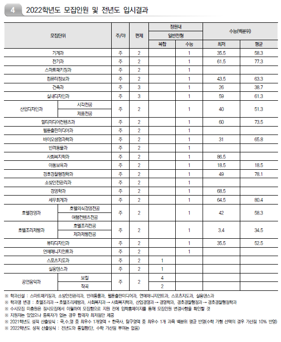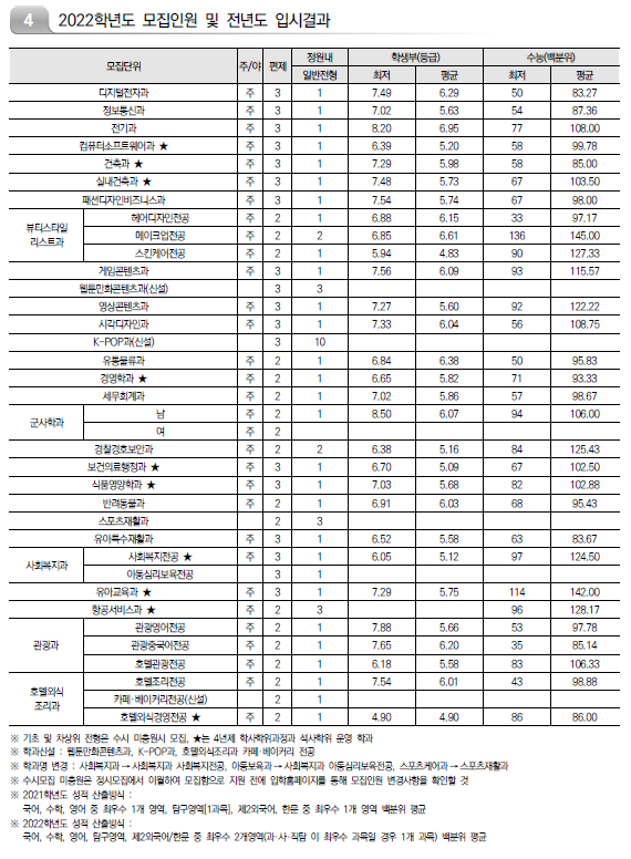 2022학년도 강동대/ 경기과학기술대/ 경민대/ 경복대/ 경인여대/ 계원예술대 정시 모집요강 및 전년도 입시결과(정시 커트라인)