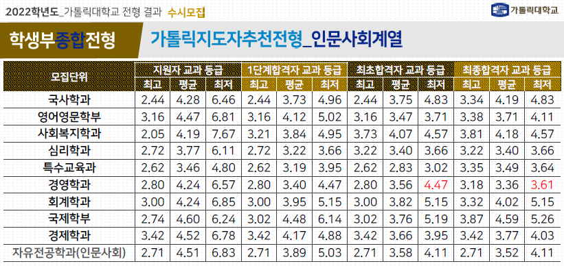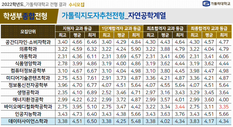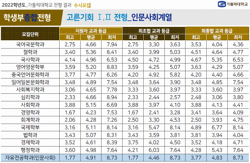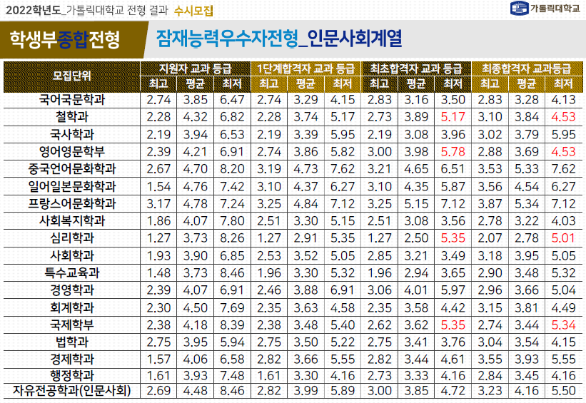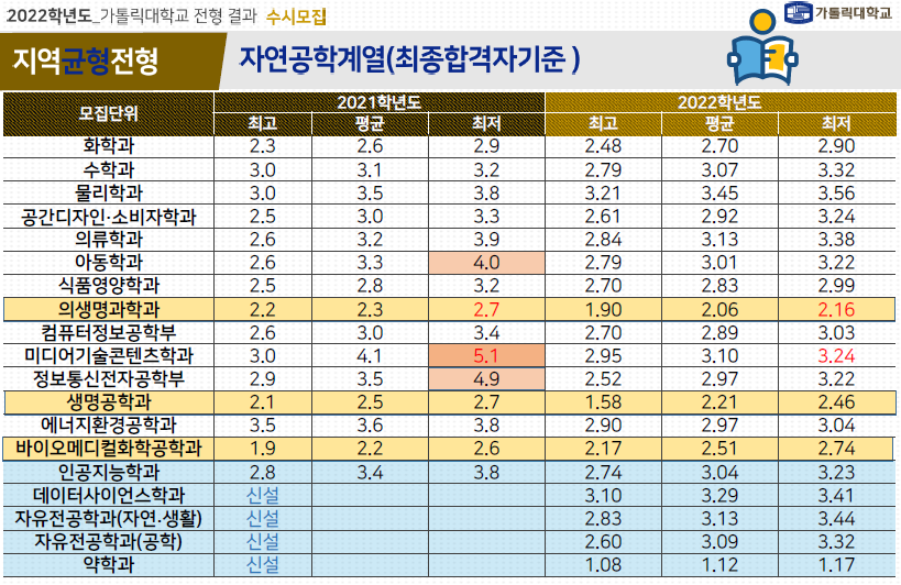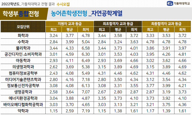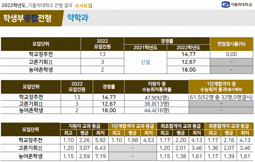 □ 2022학년도 가톨릭대학교 수시, 논술 전형결과