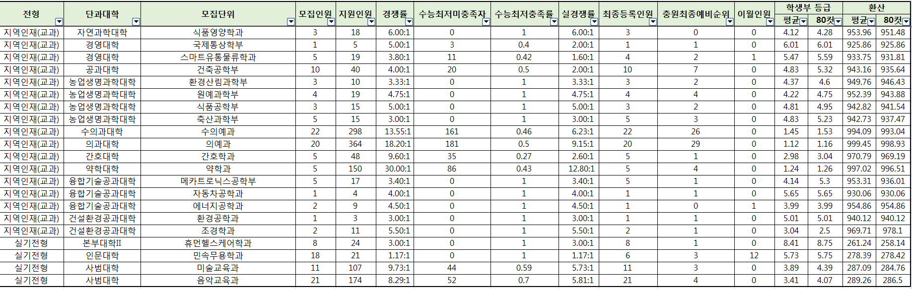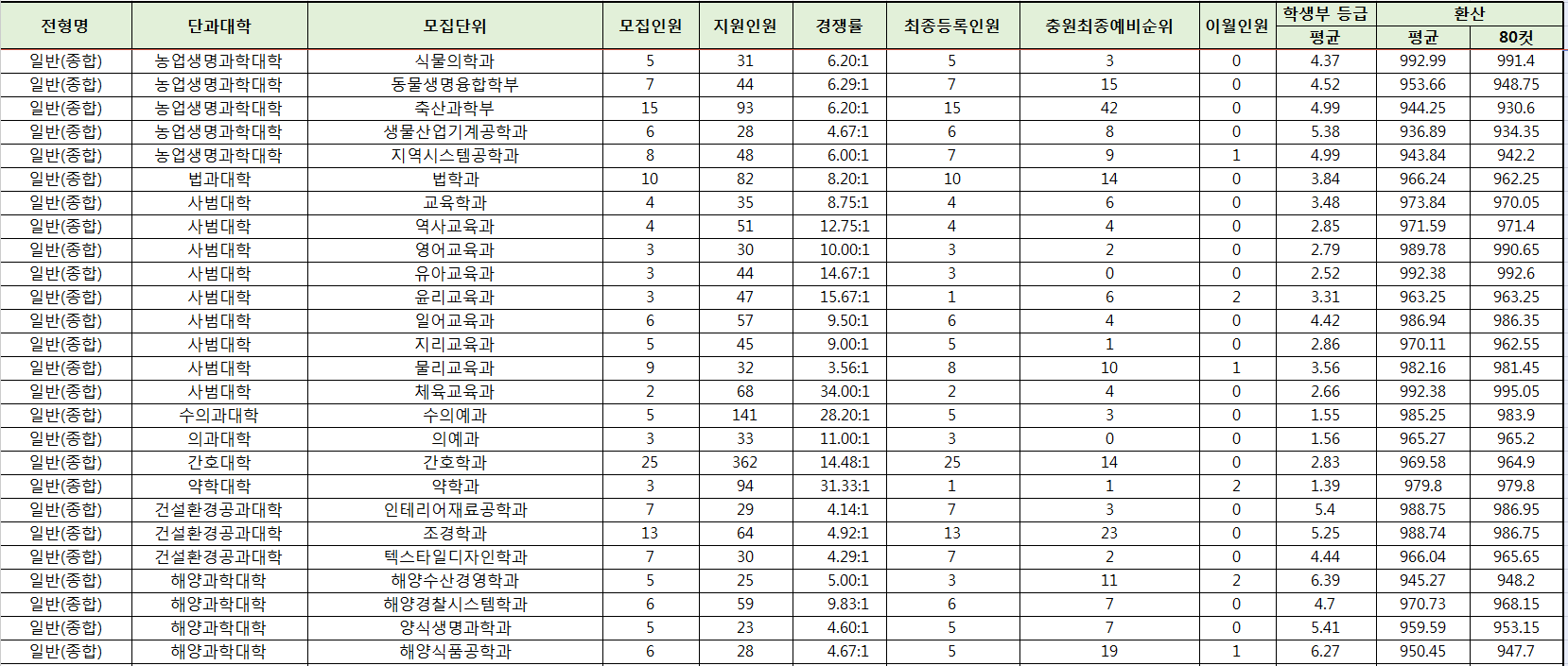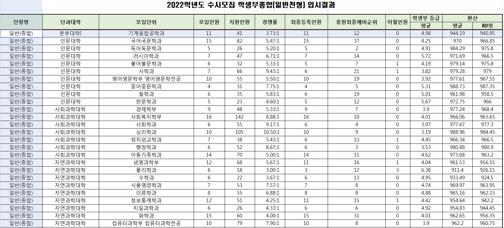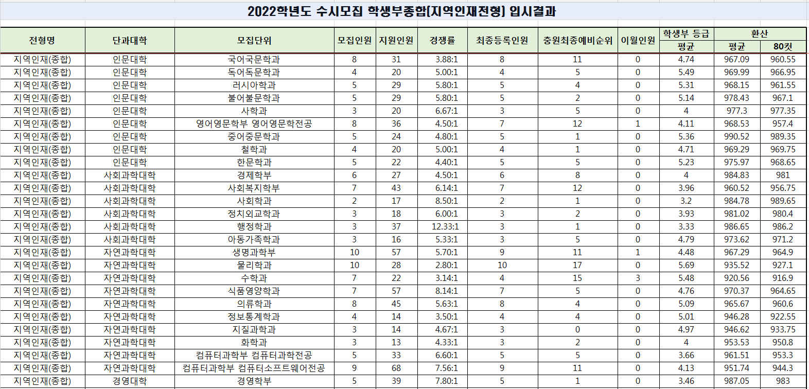| 2022학년도 경북대학교 수시, 정시, 논술 입시결과(커트라인) (0) | 2022.05.16 |