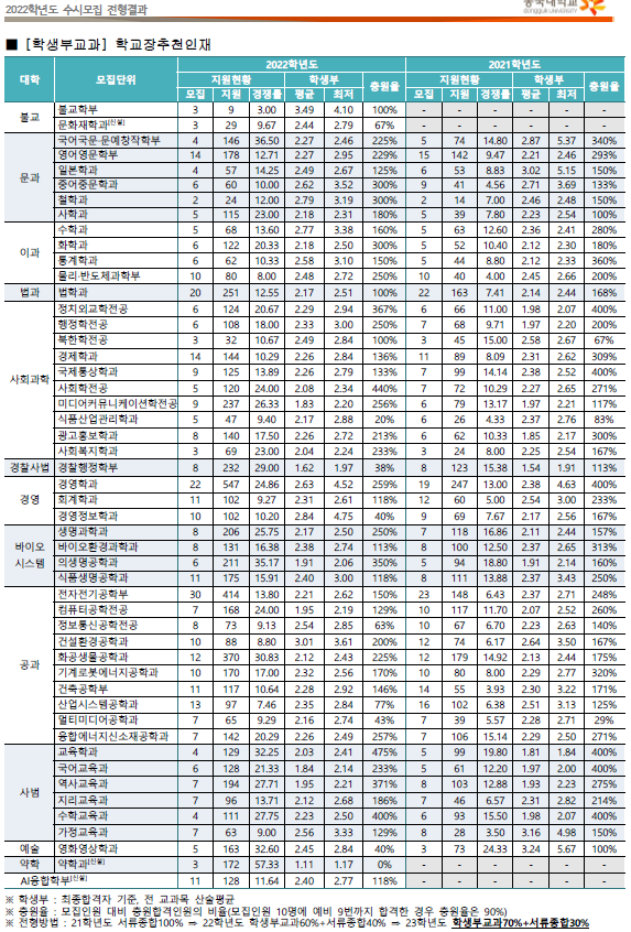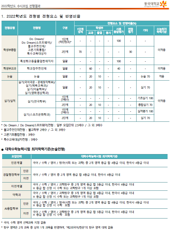 □ 2022학년도 동국대 수시, 논술 전형 결과