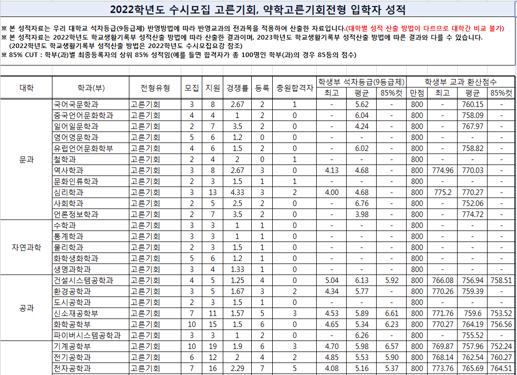 □ 2022학년도 영남대 수시,정시 전형 결과