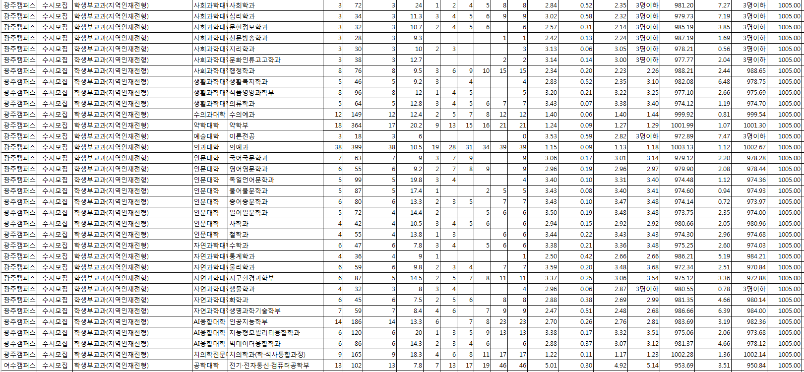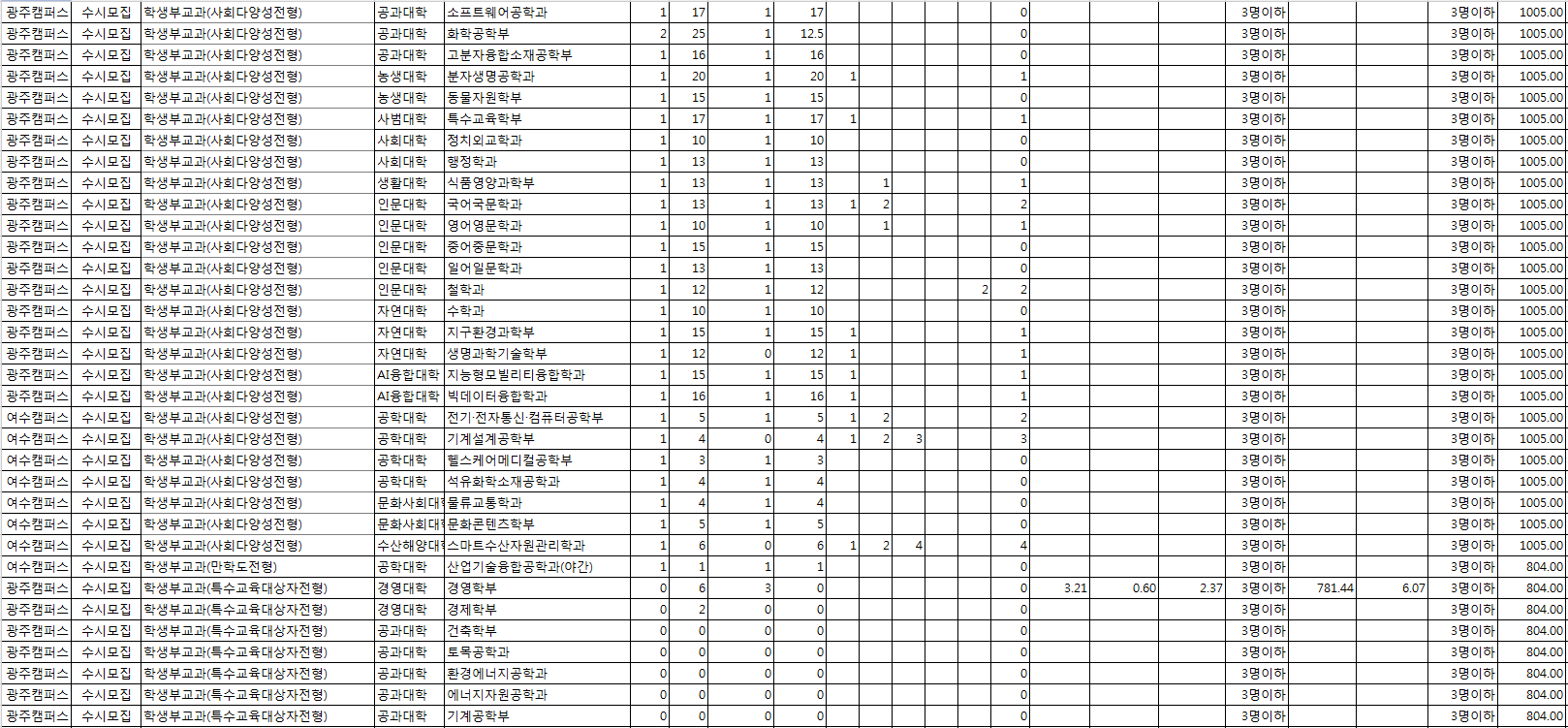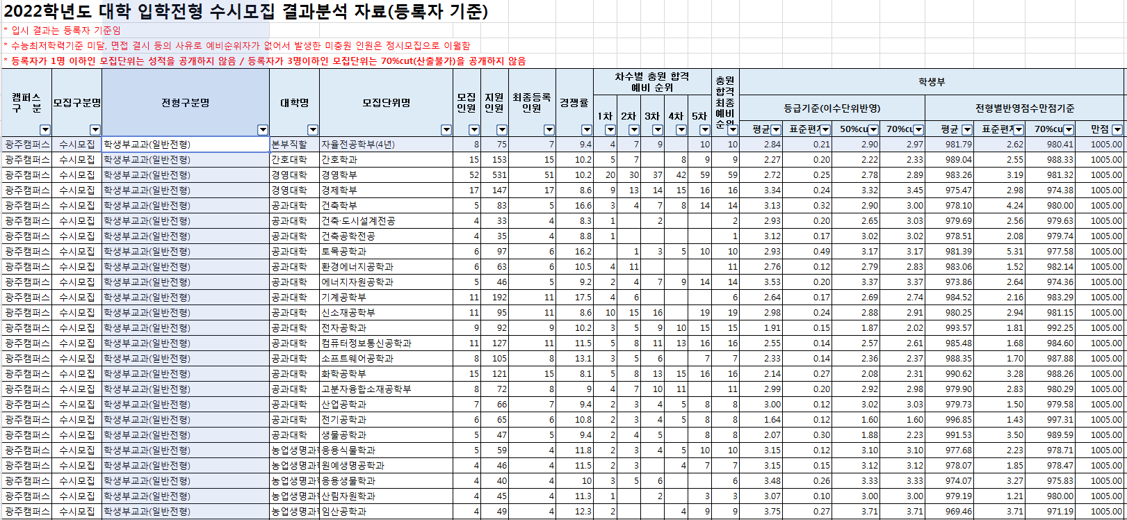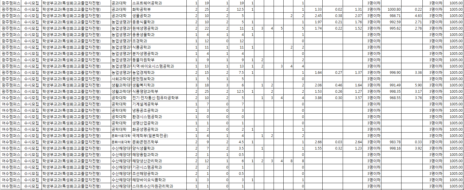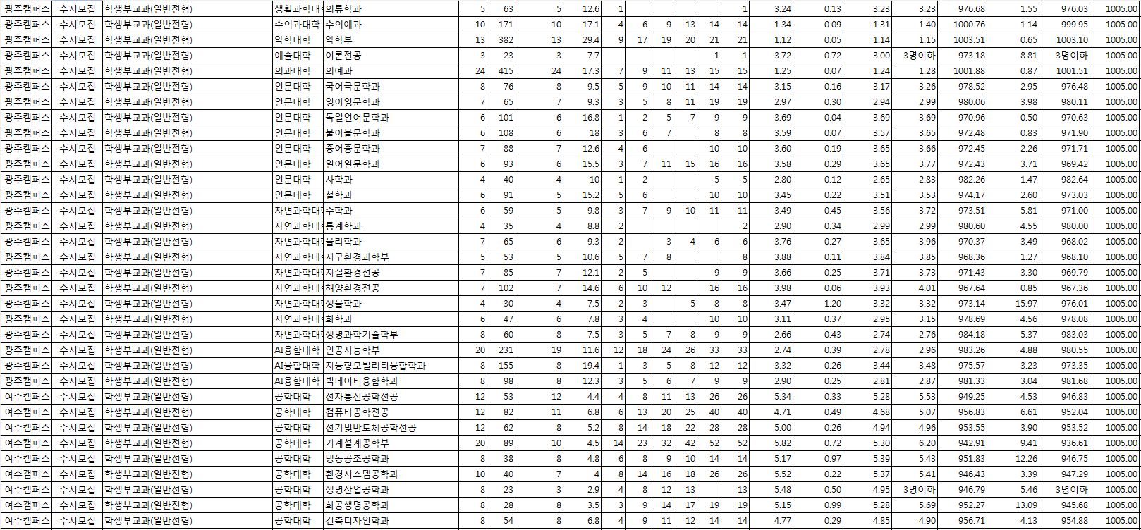 □ 2022학년도 전남대학교 수시, 정시 전형 결과