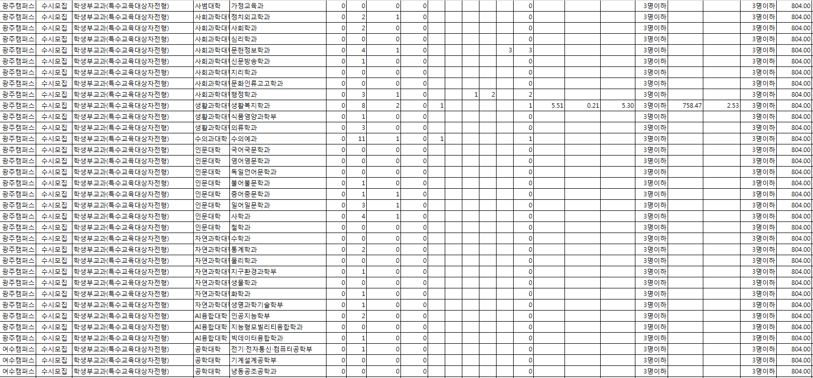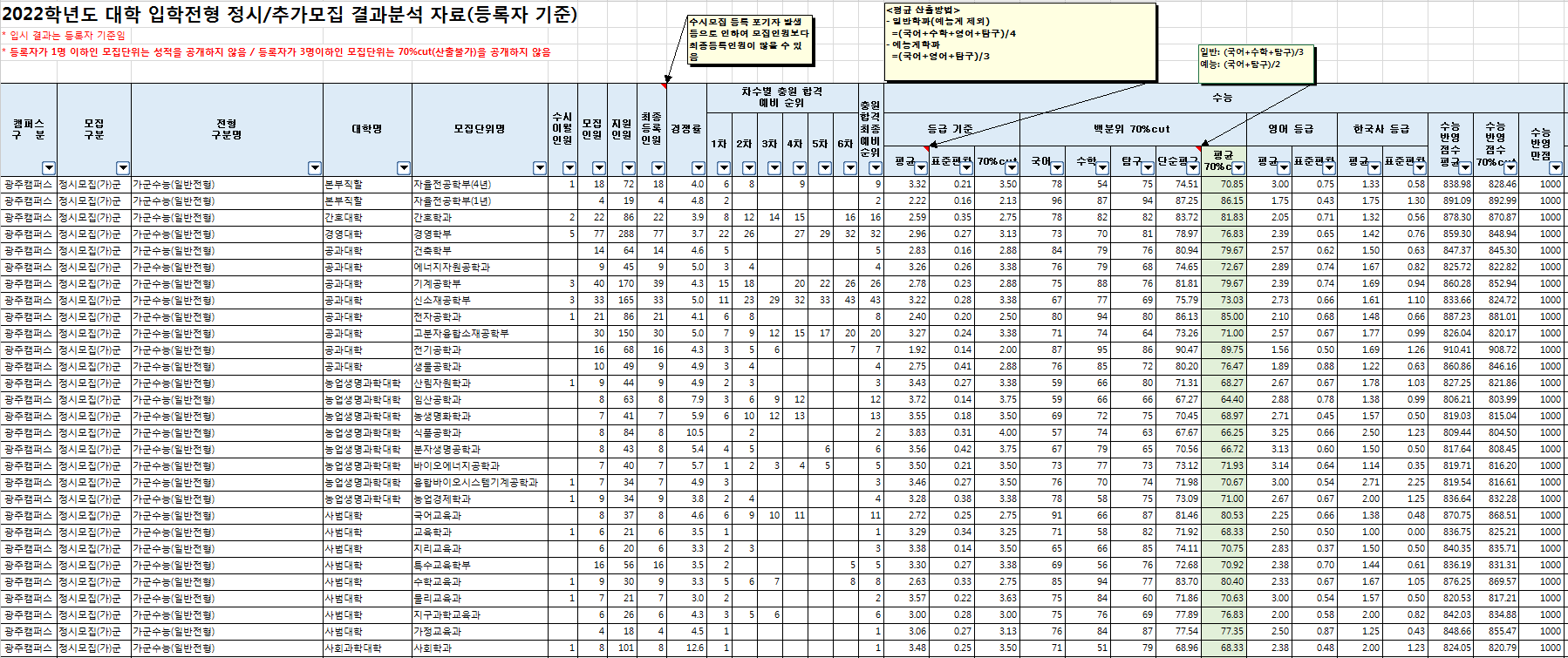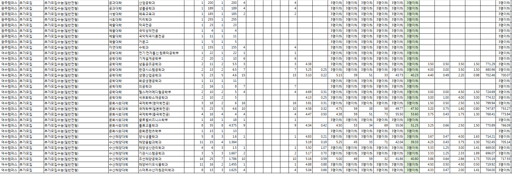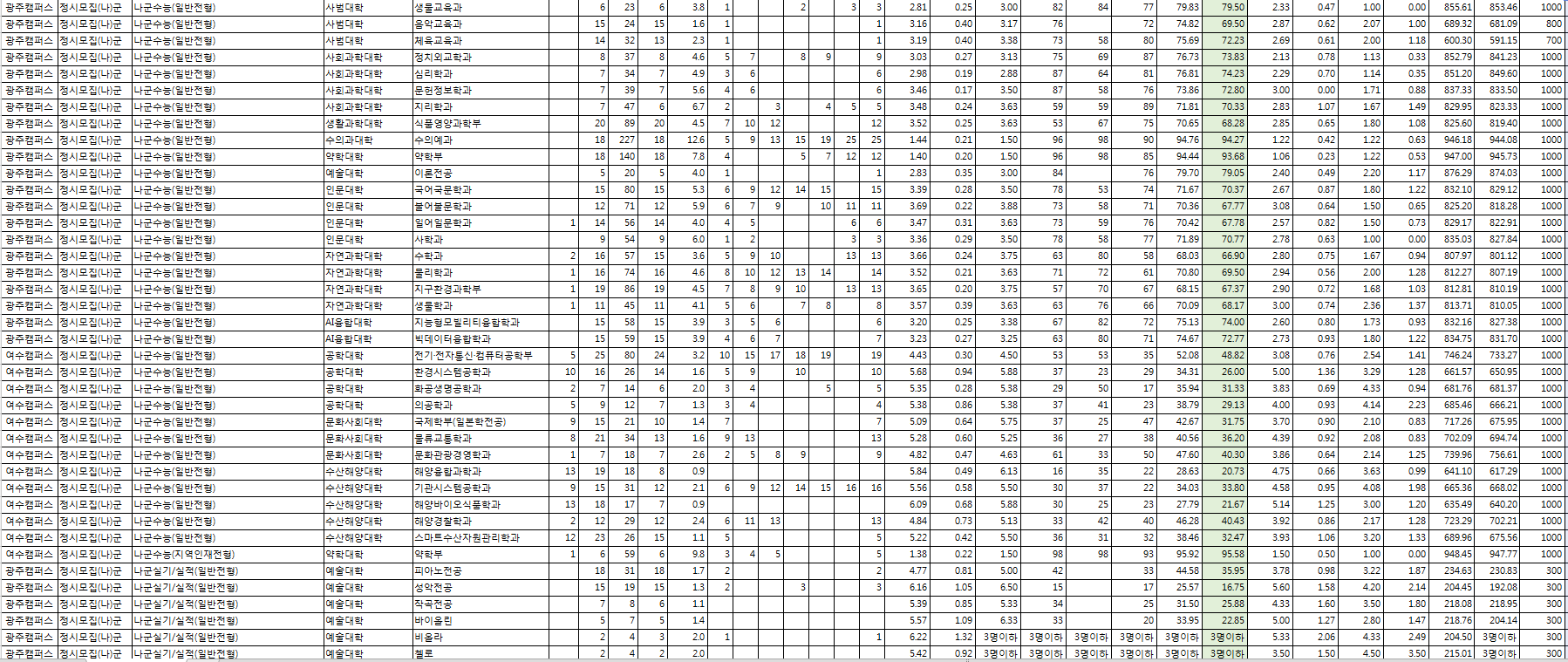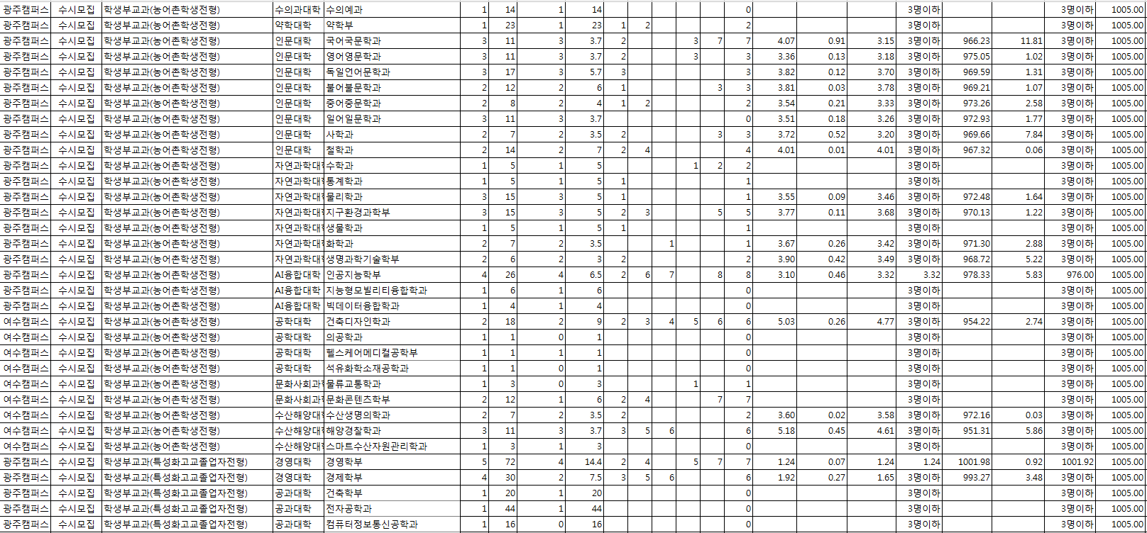 □ 2022학년도 전남대학교 수시, 정시 전형 결과