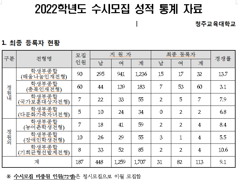 □ 2022학년도 청주교대 수시, 정시 전형 결과