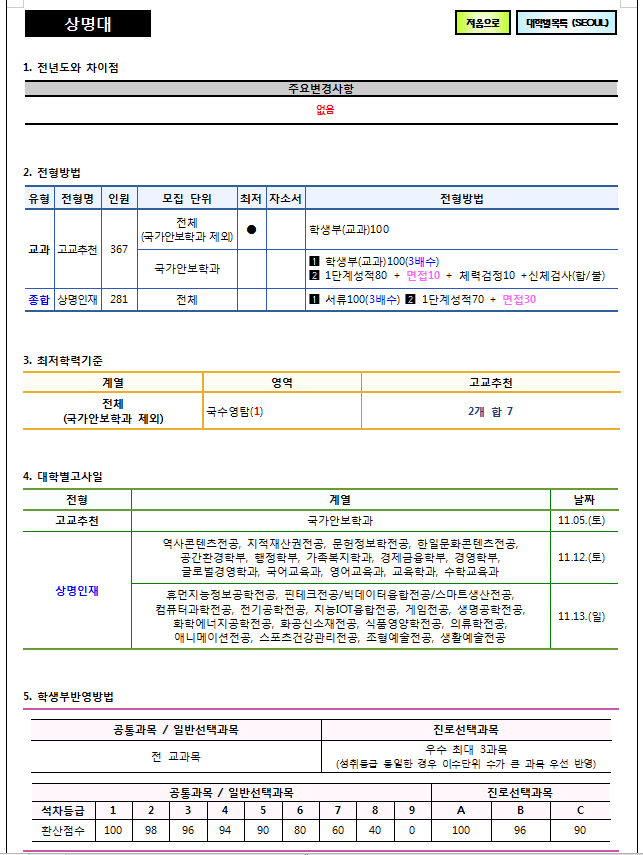 | 2023학년도 수시전형 동양대(북서울), 명지대, 부경대, 부산대, 삼육대 모집요강 (0) | 2022.07.18 |
