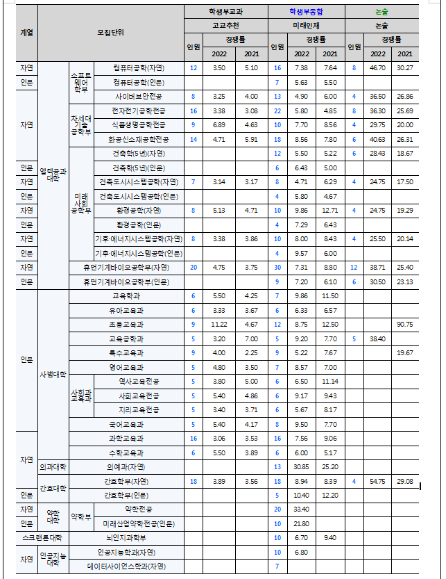 | 2023학년도 수시전형 인천대, 인하대, 전남대, 전북대, 제주대 모집요강 (0) | 2022.07.19 |