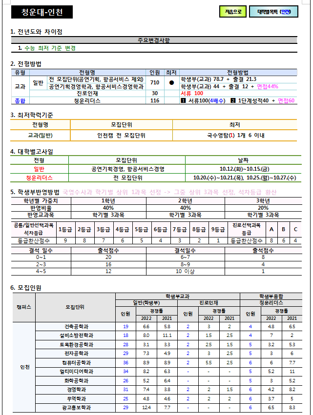 | 2023학년도 수시전형 인천대, 인하대, 전남대, 전북대, 제주대 모집요강 (0) | 2022.07.19 |