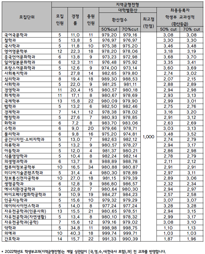| 2022학년도 강원대(춘천), 강원대(삼척), 경남대 - 수시, 정시 입시결과 (커트라인) (0) | 2022.08.17 |