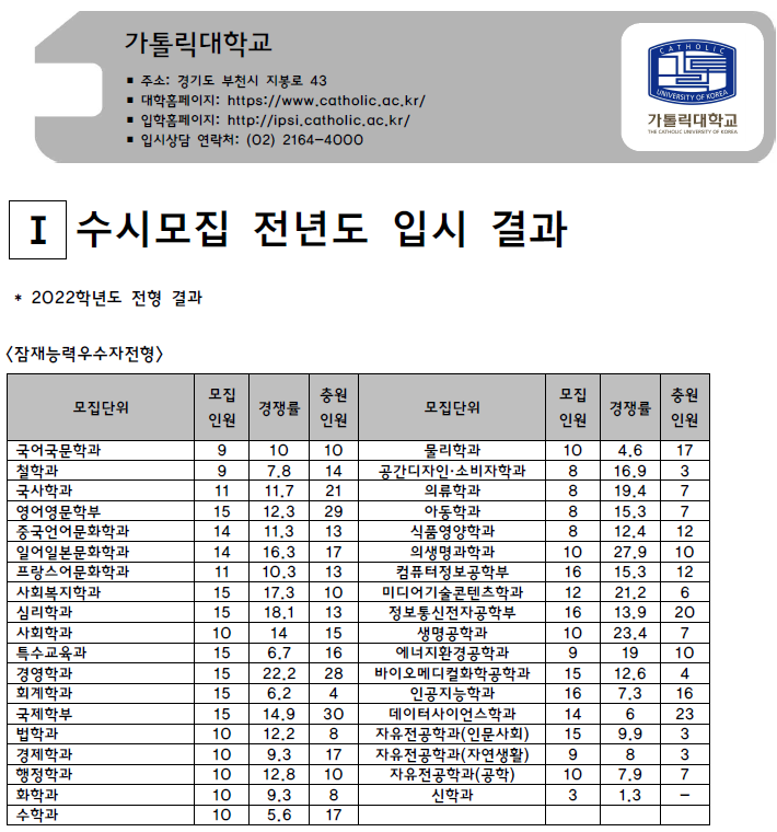 | 2022학년도 가야대, 가천대, 가톨릭관동대 - 수시, 정시 입시결과 (커트라인) (0) | 2022.08.15 |