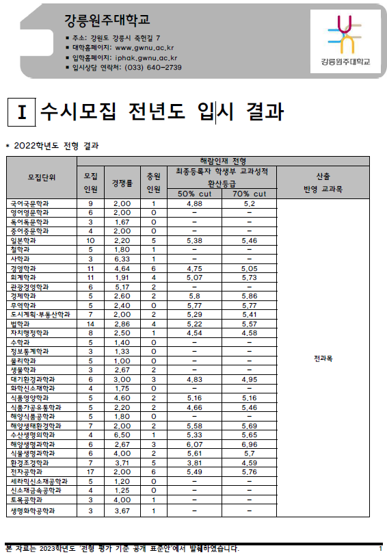 | 2022학년도 강원대(춘천), 강원대(삼척), 경남대 - 수시, 정시 입시결과 (커트라인) (0) | 2022.08.17 |