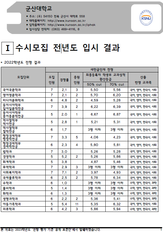 | 2022학년도 공주대, 공주교대, 고신대, 광신대 - 수시, 정시 입시결과 (커트라인) (0) | 2022.08.18 |