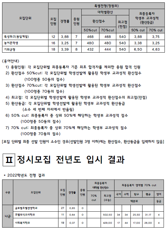 | 2022학년도 광운대, 국민대, 광주여대, 군산대 - 수시, 정시 입시결과 (커트라인) (0) | 2022.08.18 |