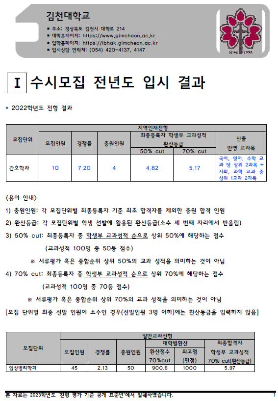 | 2022학년도 공주대, 공주교대, 고신대, 광신대 - 수시, 정시 입시결과 (커트라인) (0) | 2022.08.18 |