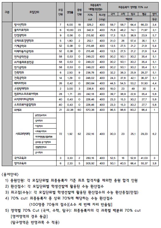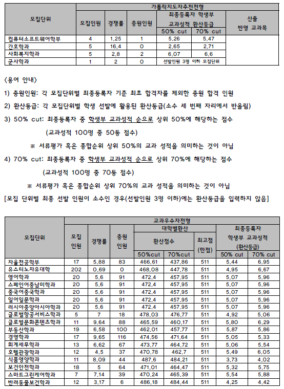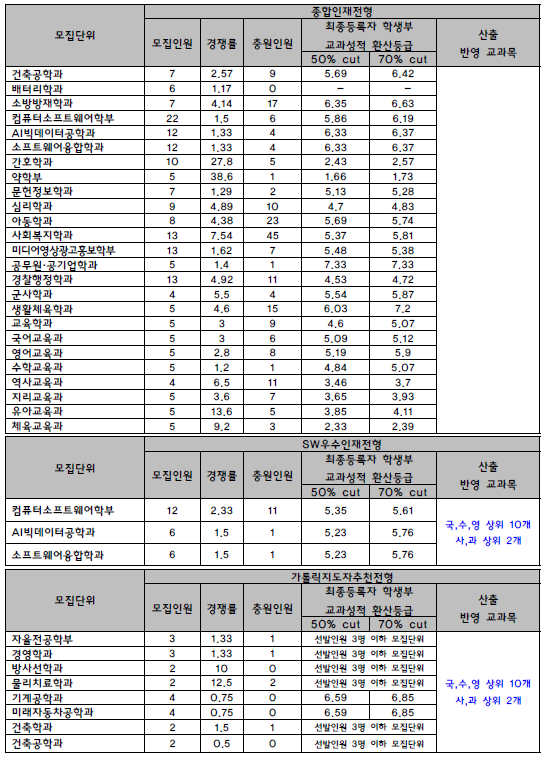 | 2022학년도 광운대, 국민대, 광주여대, 군산대 - 수시, 정시 입시결과 (커트라인) (0) | 2022.08.18 |