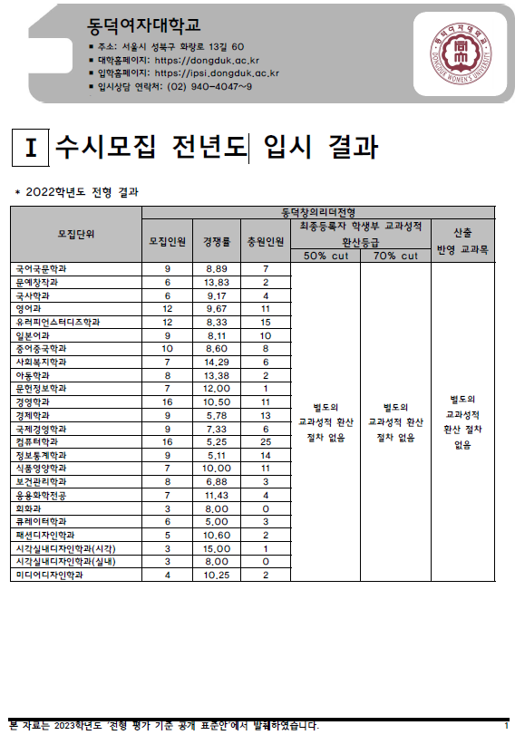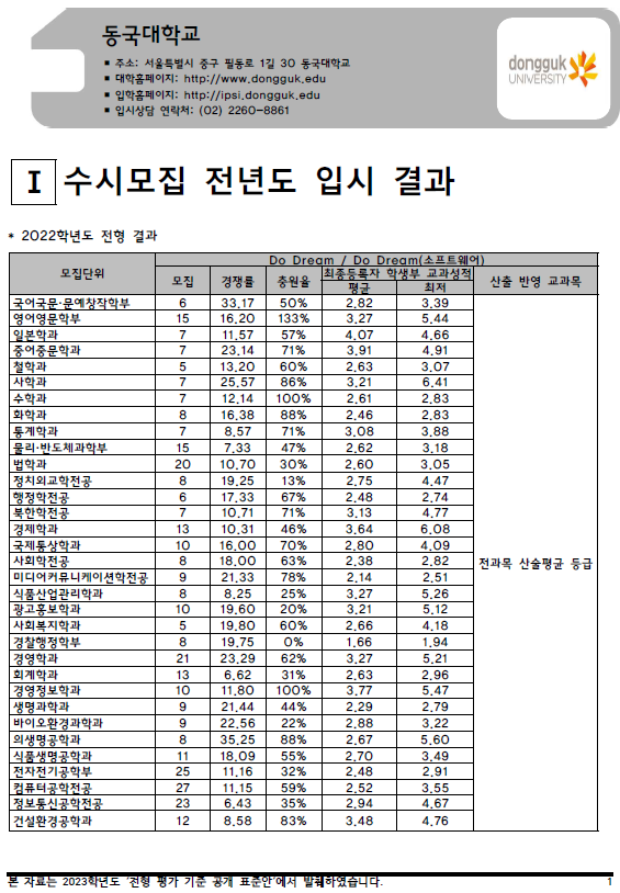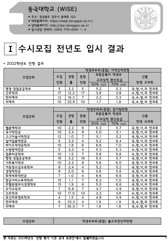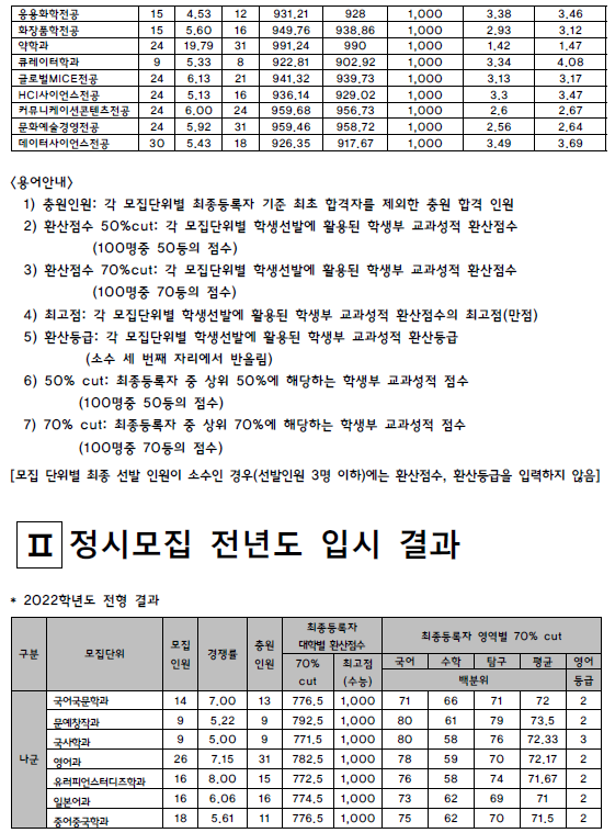 | 2022학년도 동아대, 동양대, 목원대 - 수시, 정시 입시결과 (커트라인) (0) | 2022.08.20 |