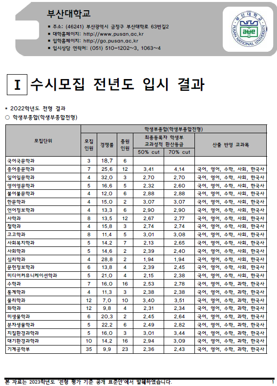 | 2022학년도 부경대, 백석대, 부산교육대 - 수시, 정시 입시결과 (커트라인) (0) | 2022.08.20 |