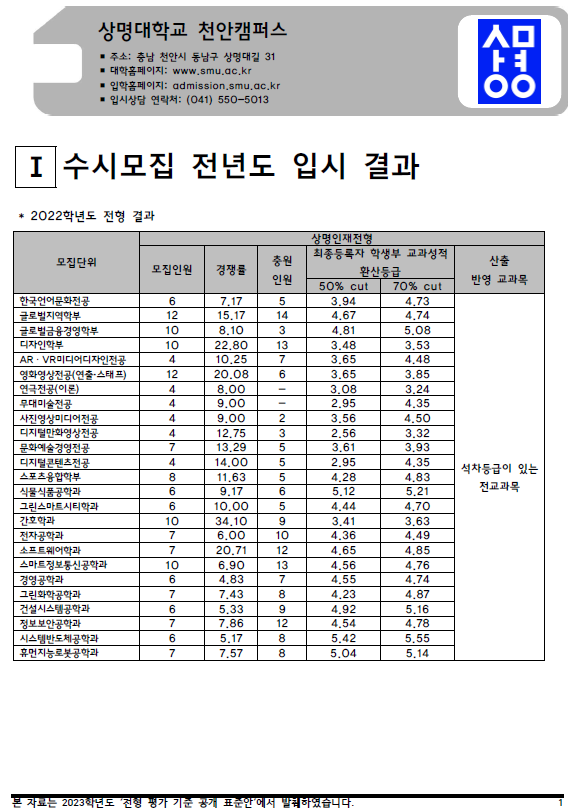 | 2022학년도 명지대, 동양대, 목원대 - 수시, 정시 입시결과 (커트라인) (0) | 2022.08.20 |