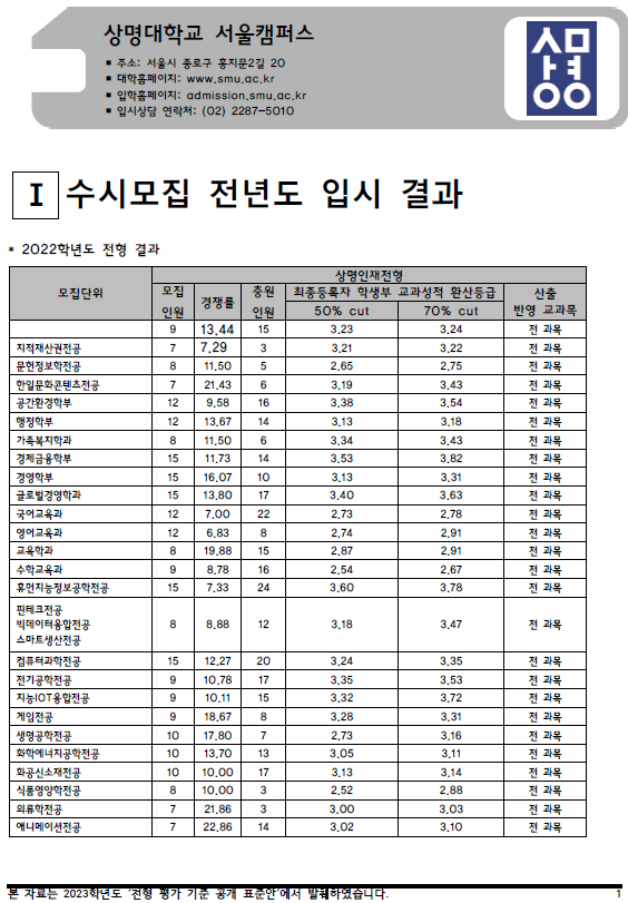 | 2022학년도 상지대, 서강대, 서경대 - 수시, 정시 입시결과 (커트라인) (0) | 2022.08.22 |