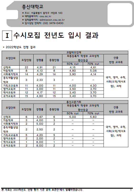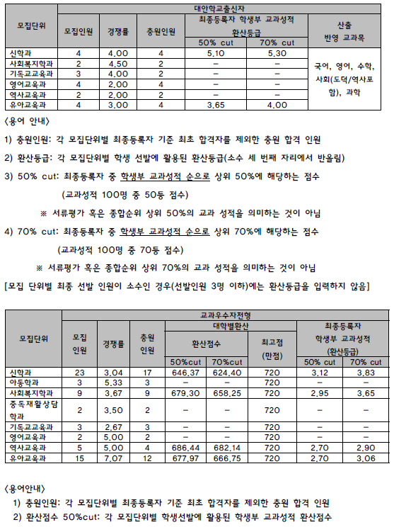 | 2022학년도 한국교원대, 한국교통대, 한국기술교육대, 한국성서대 - 수시, 정시 입시결과 (커트라인) (0) | 2022.09.02 |