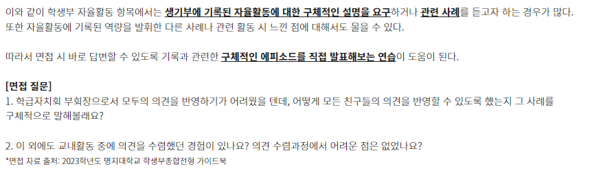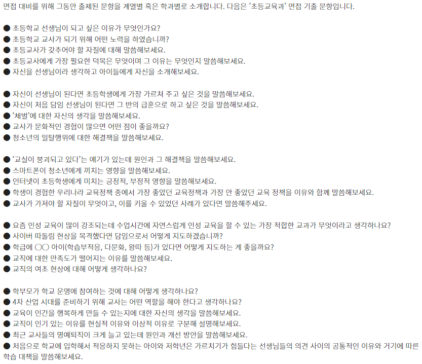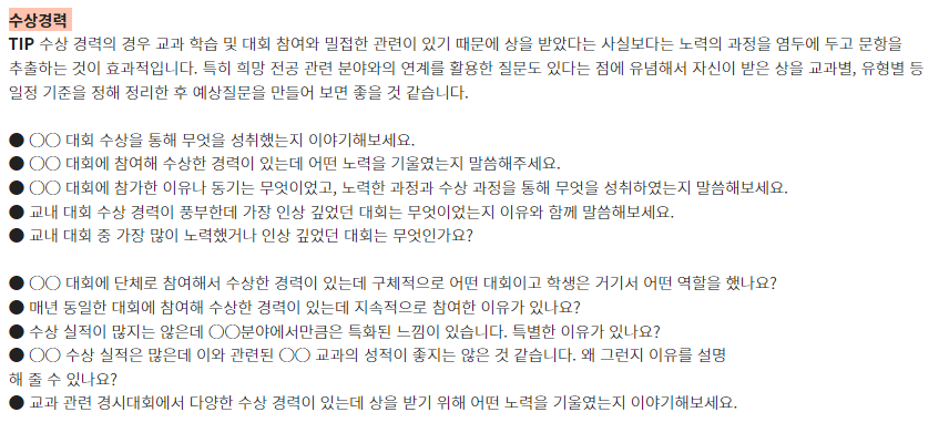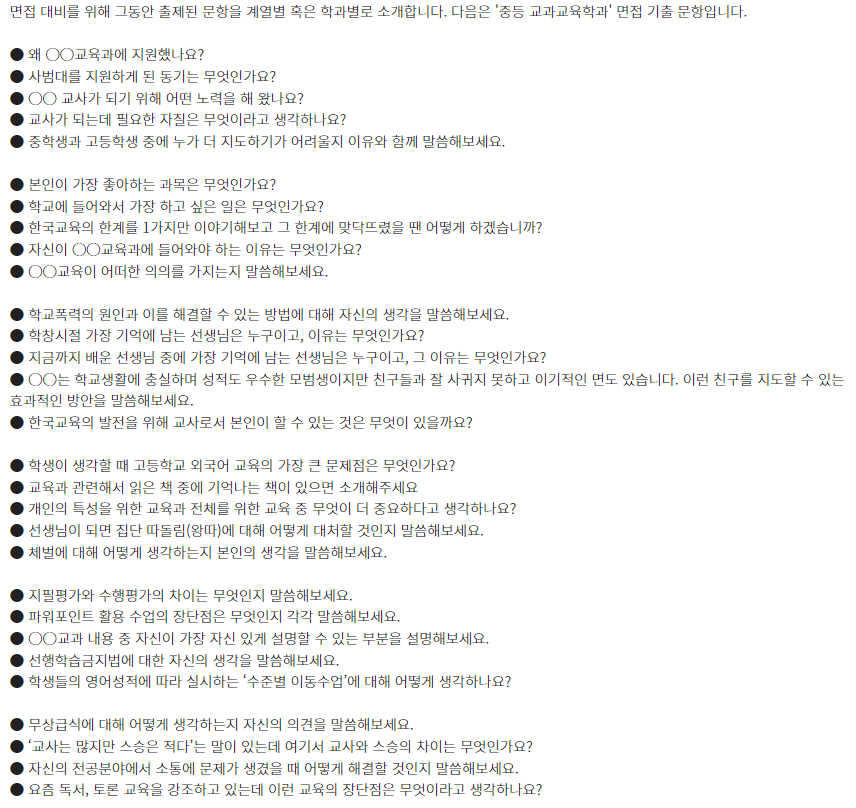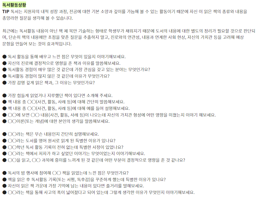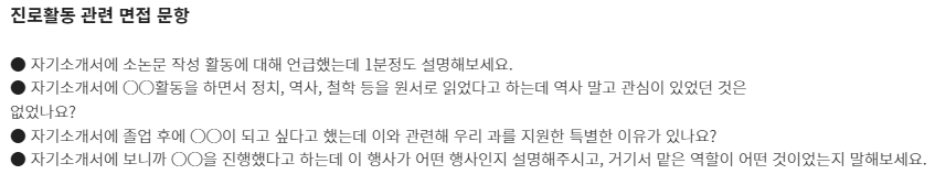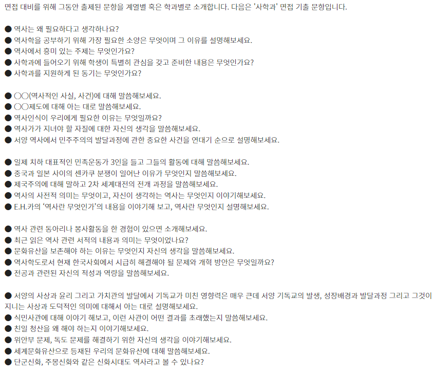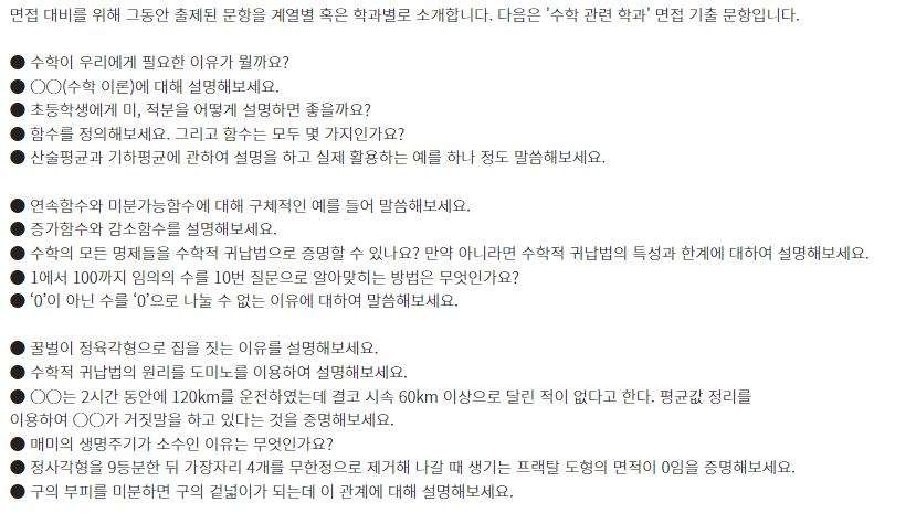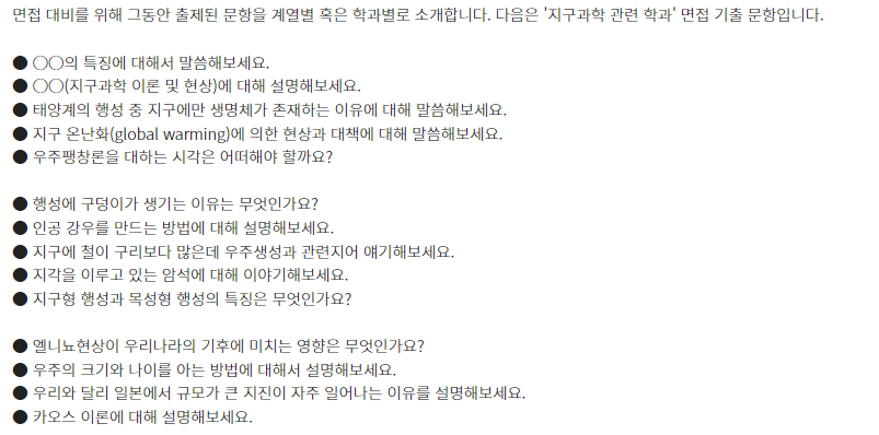 ★ 제시문면접 기출문제는 각 대학 입학홈페이지의 자료실에서 "면접 기출" 이나 "선행학습영향평가" 참조