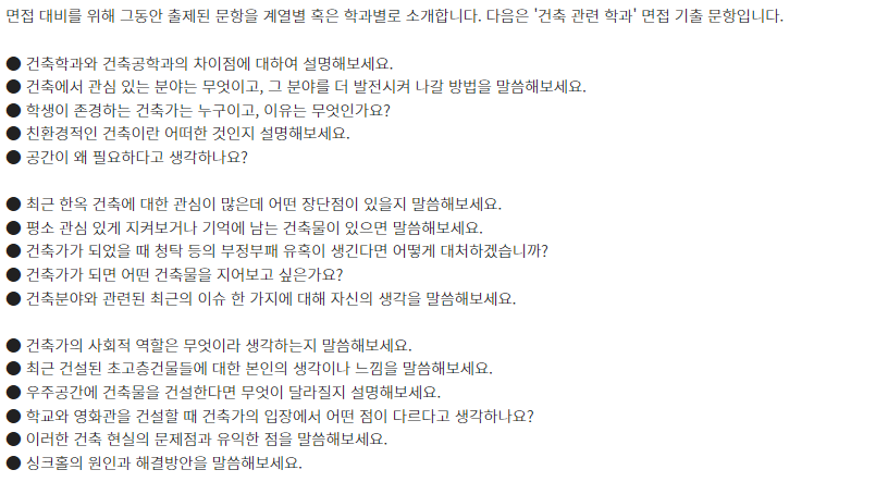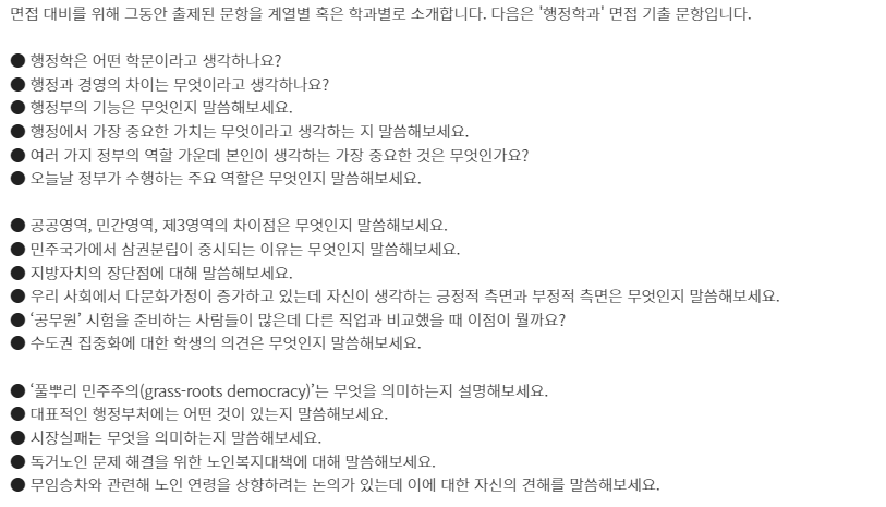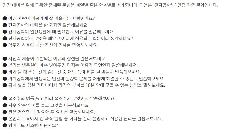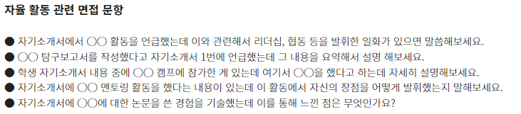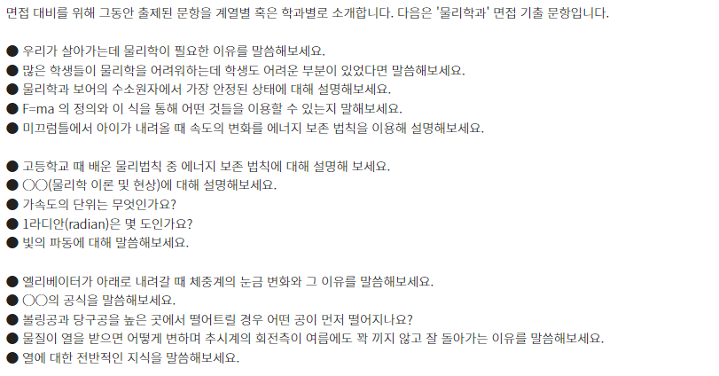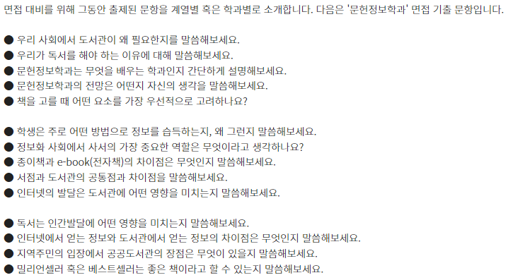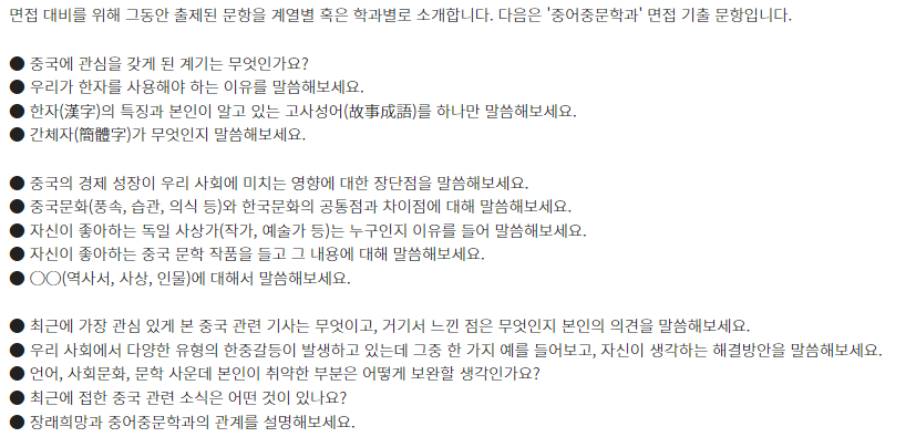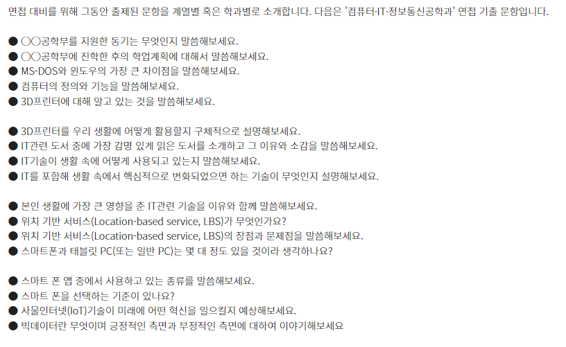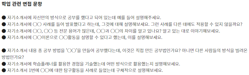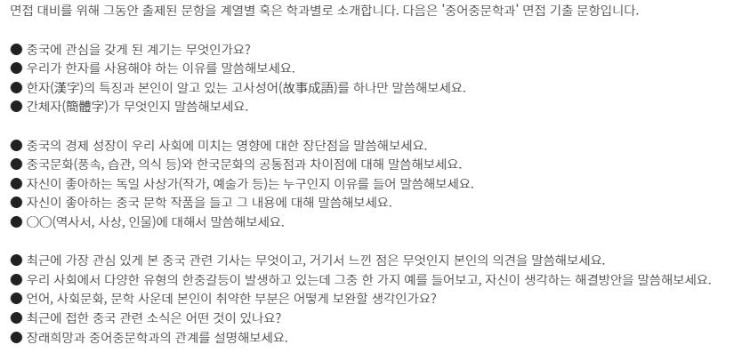□ 학과별 면접 기출 문항