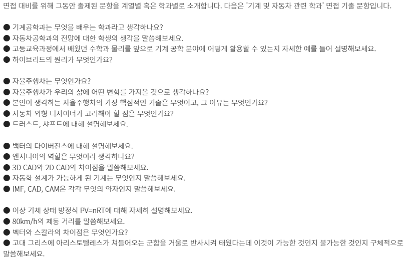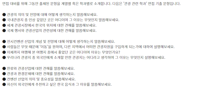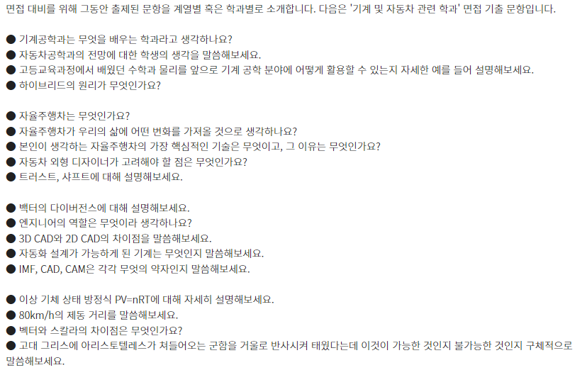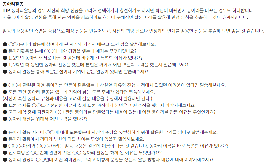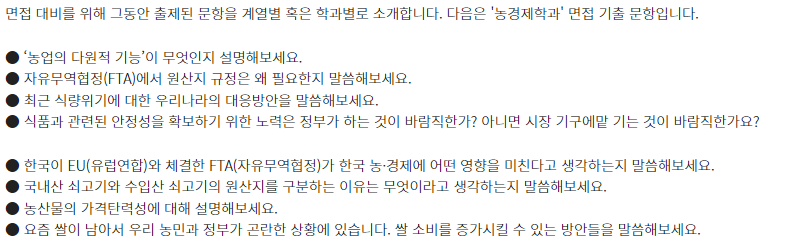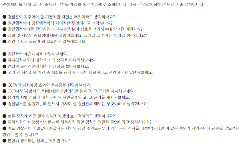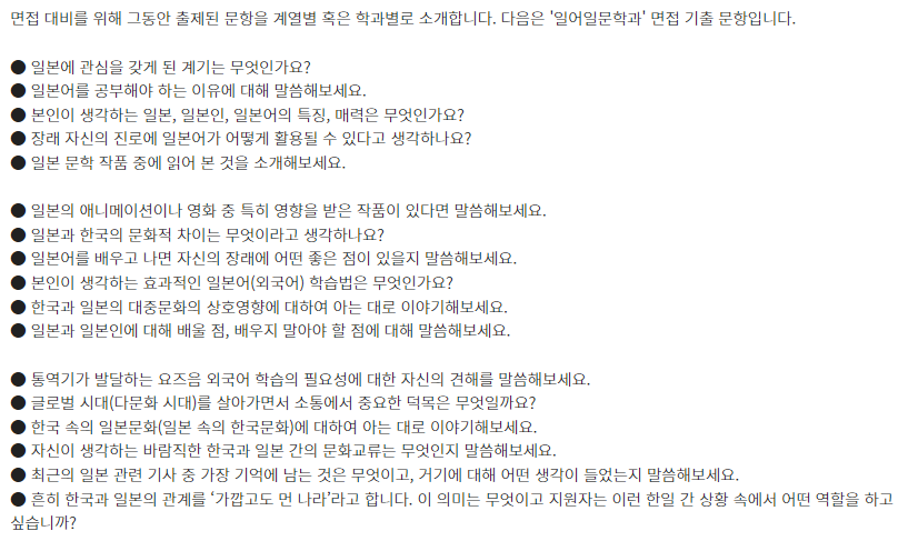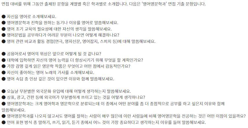 □ 학과별 면접 기출 문항