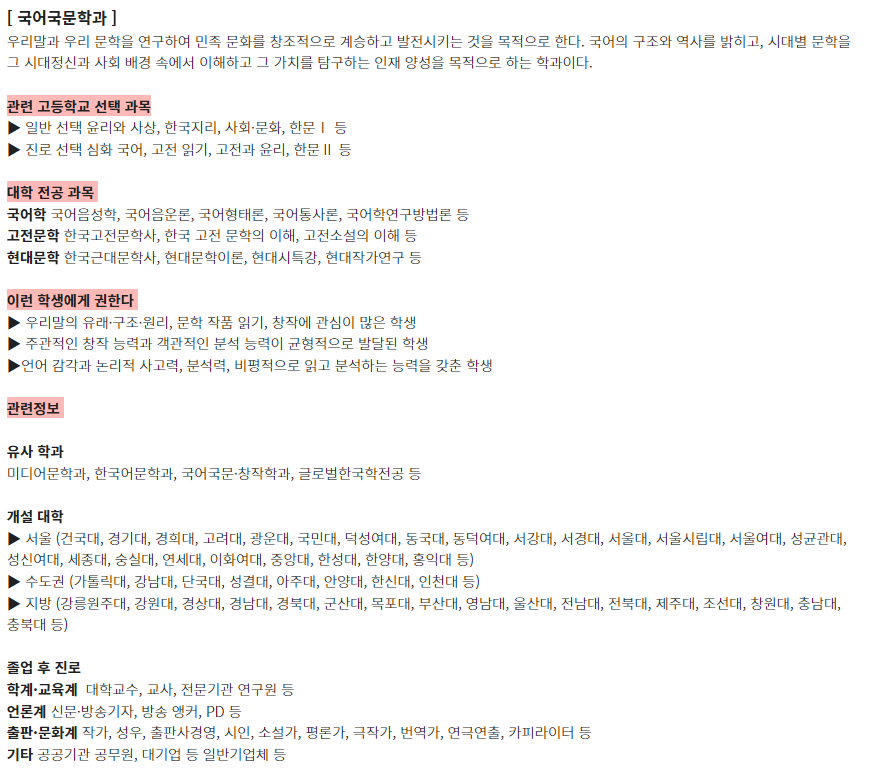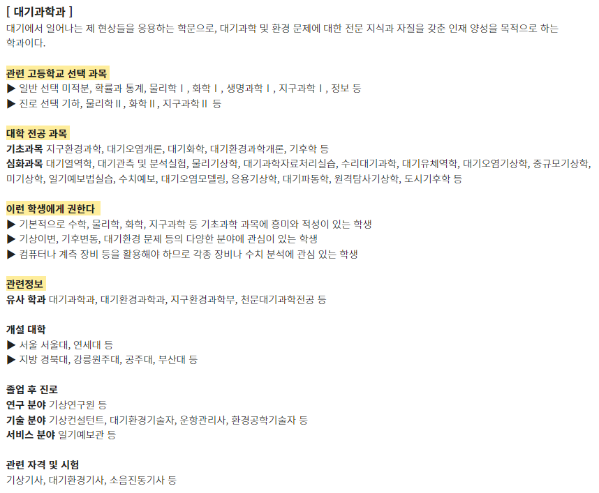 고등학교 선택과목 가이드 1 - 학과별