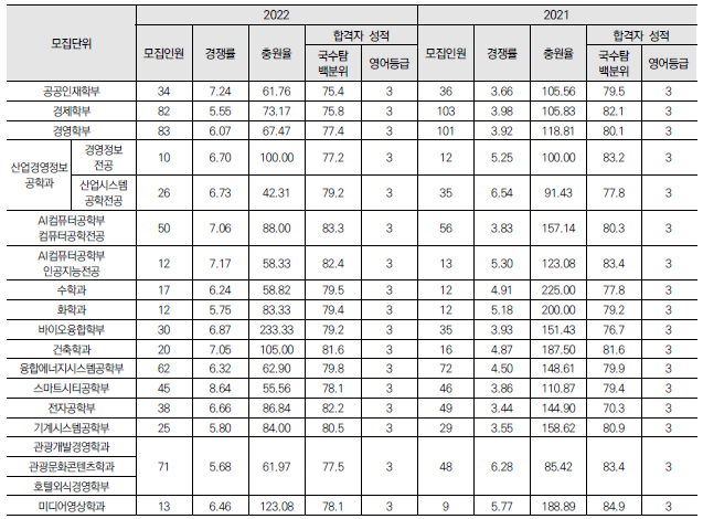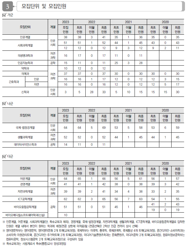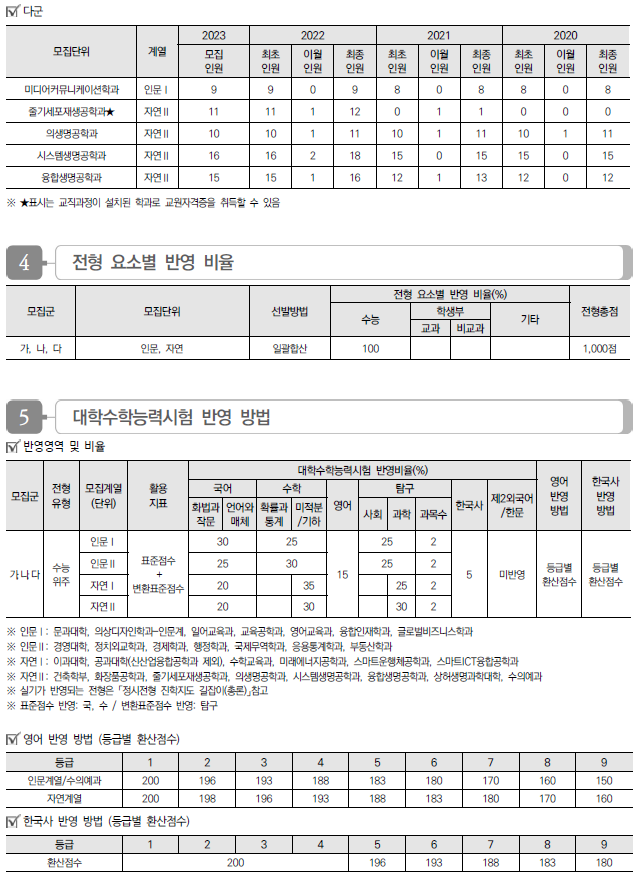 2023학년도 가톨릭대, 강서대, 건국대, 건국대(글로컬), 경기대 정시 모집요강 및 전년도 입시결과(커트라인)