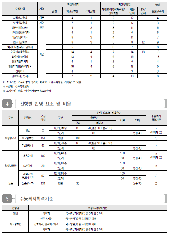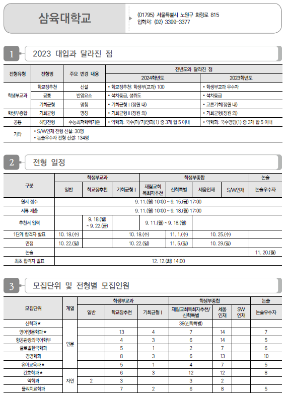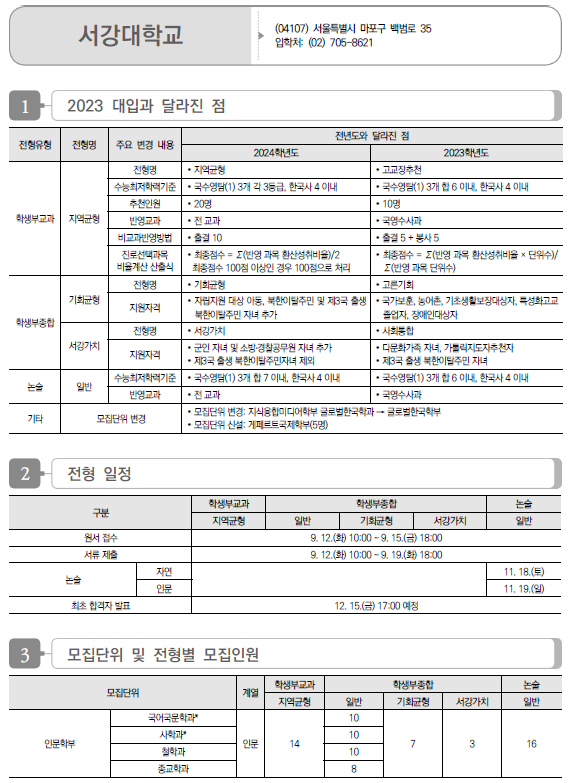 2024학년도 서강대, 삼육대, 상명대 수시 모집요강, 반영방법, 수능최저 및 2023 입시결과(커트라인)