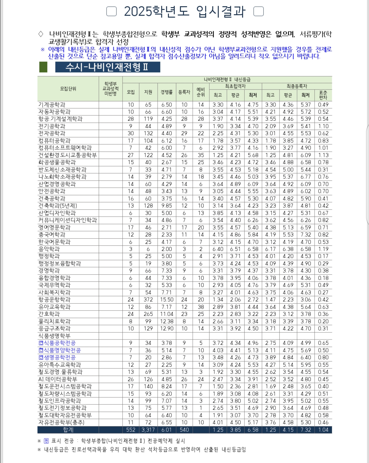 2025 한국교통대 수시 및 정시 입시결과(커트라인)