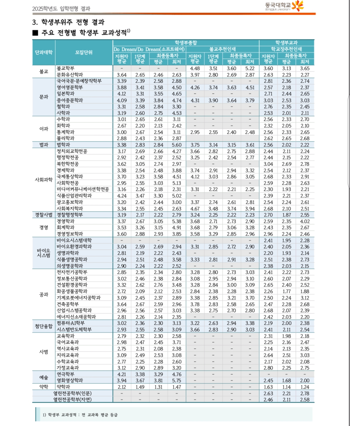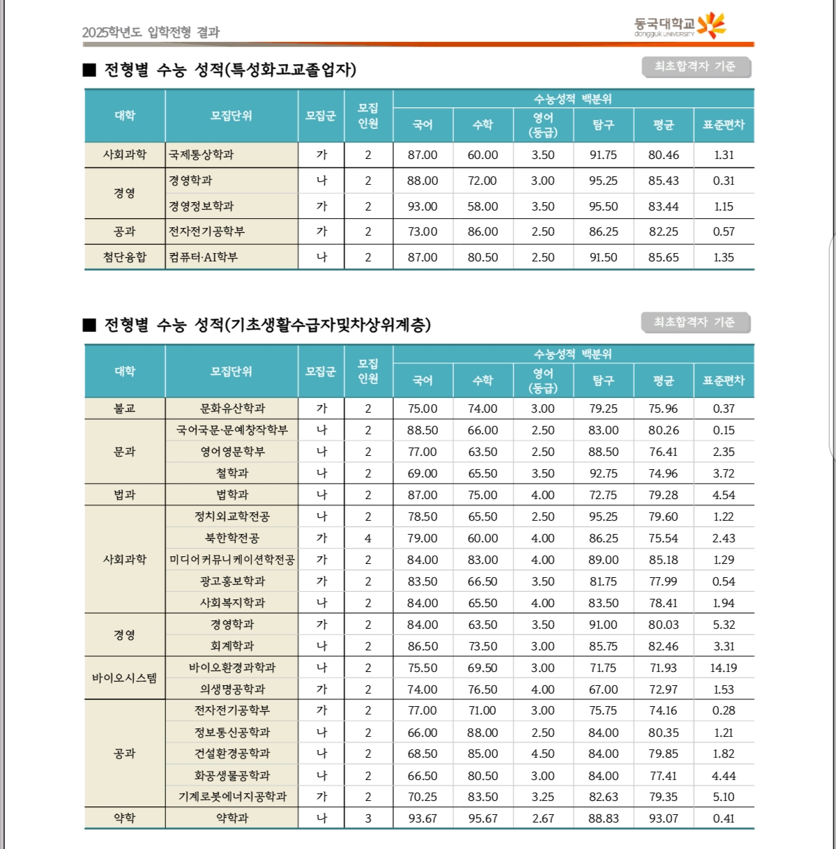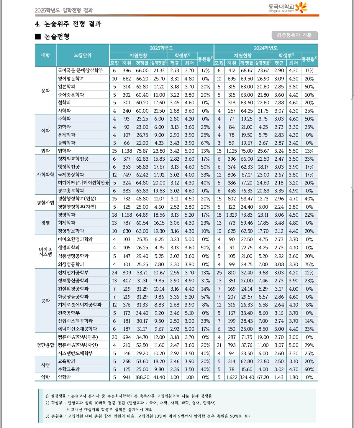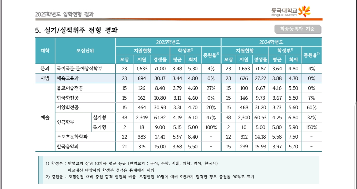 2025 동국대학교 수시 및 정시 입시결과(커트라인)